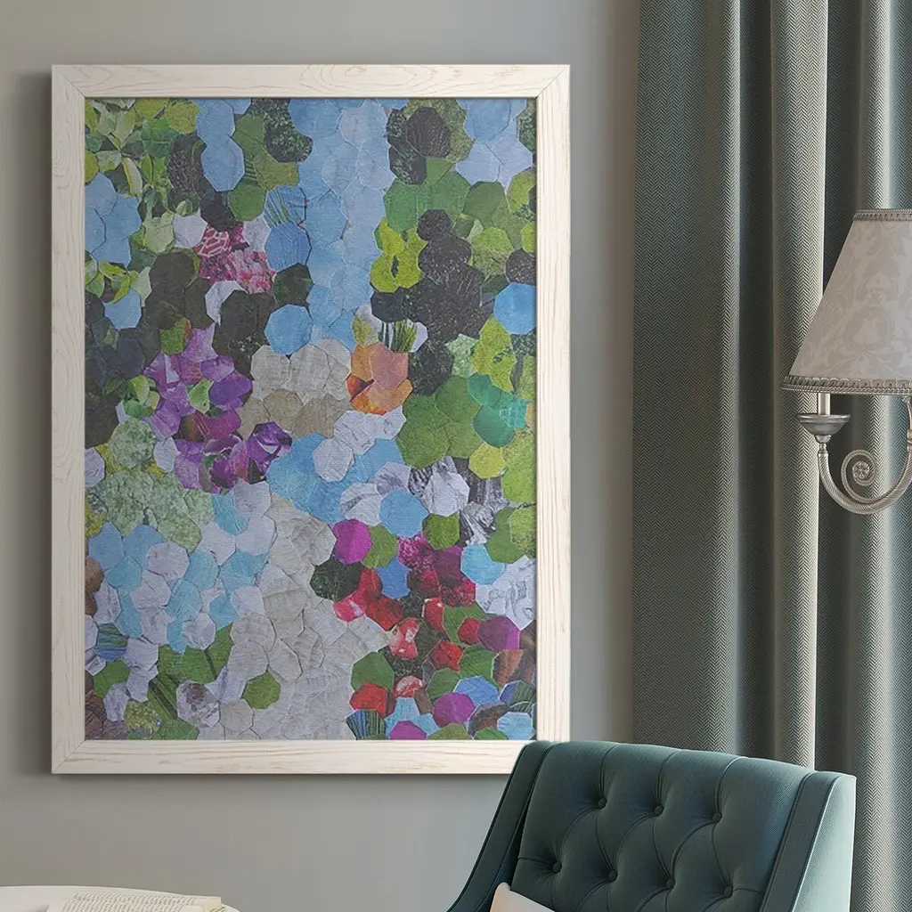 The artwork collection by PORT 68 features a shadowboxed frame and upholstered interior fabric wrapped panel for mounting the giclee print. Hand framed with nail head trim.