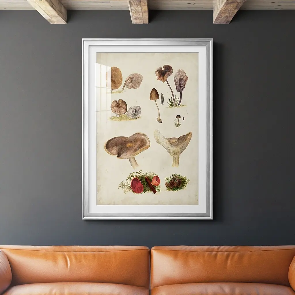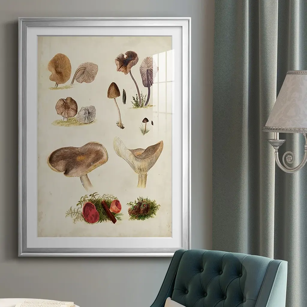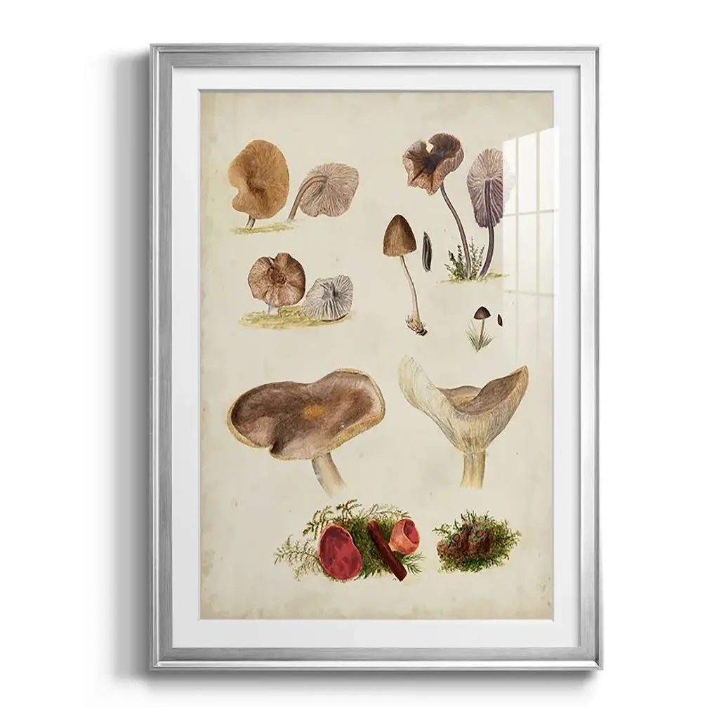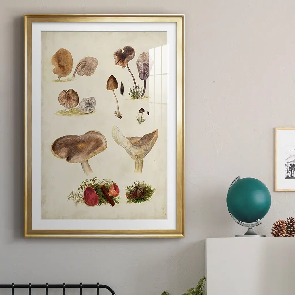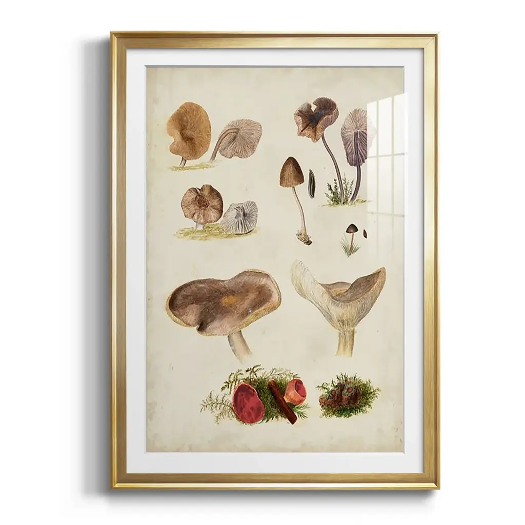 Mushroom Species III Premium Framed Print - Ready to Hang A Premium Framed Print created to last. Framed in distressed wood and available in an array of sizes and colors Featuring a beveled a solid wood stretcher bar, each piece comes ready to hand 4 SIZES AVAILABLE 30.5''X42.5'' - Overall Size 26.5'X36.5'' - Overall Size 22.5''x30.5'' - Overall Size 18.5''x24.5'' - Overall Size Each piece is made to order. Each piece comes with hanging hardware. Made in the USA Ready to Hang Giclee Paper Print Acrylic Glass Beveled Matt Board