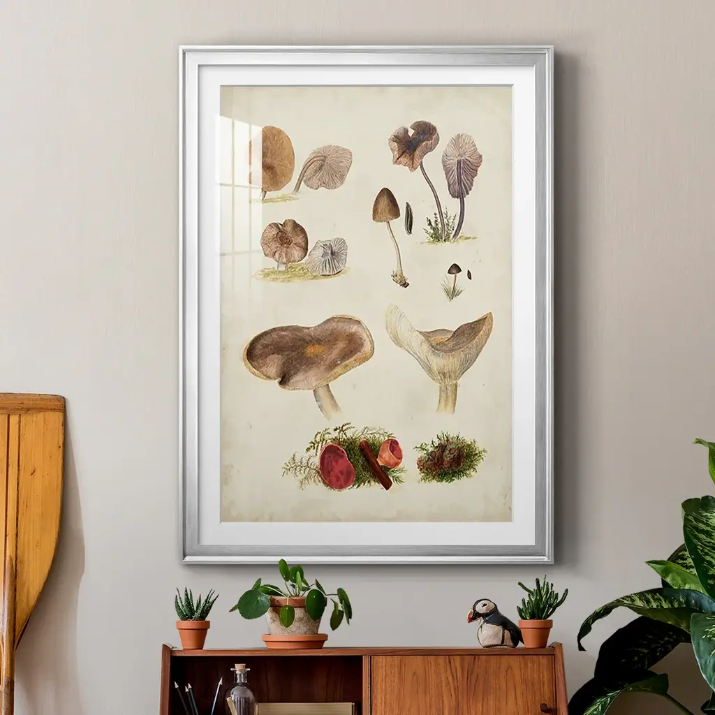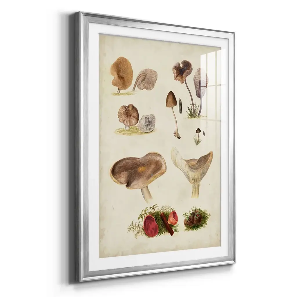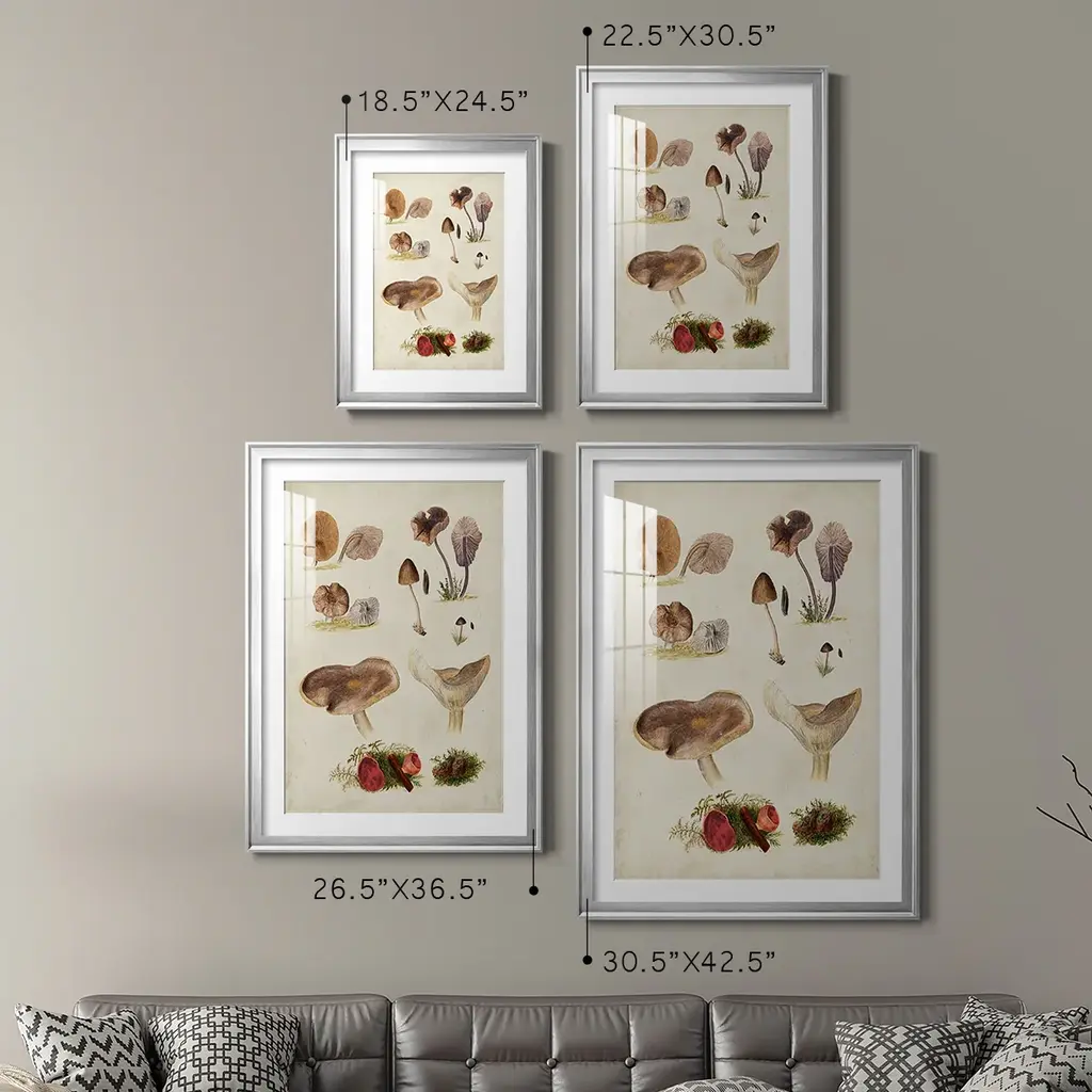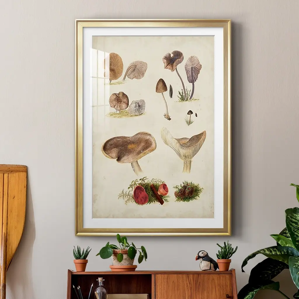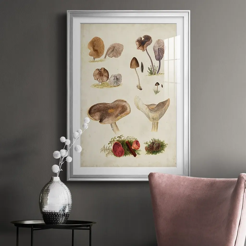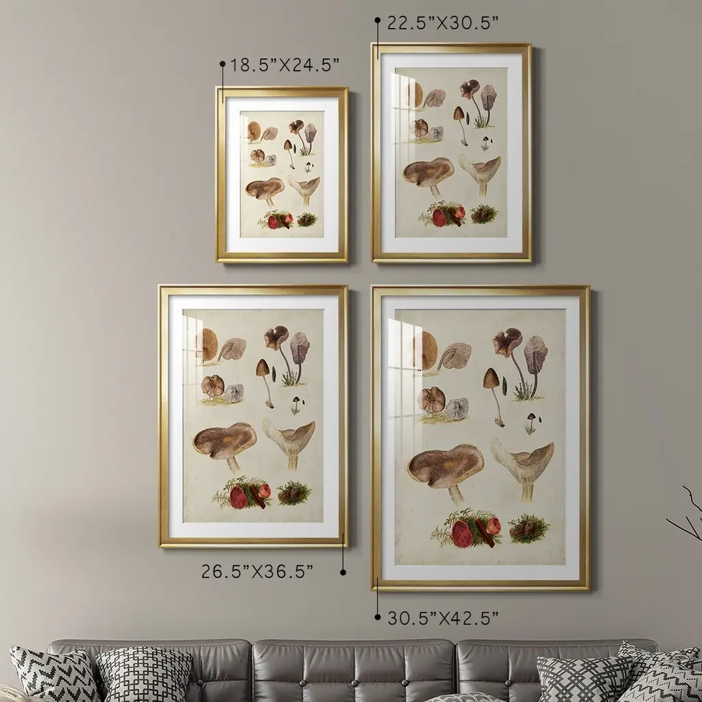 Mushroom Species III Premium Framed Print - Ready to Hang A Premium Framed Print created to last. Framed in distressed wood and available in an array of sizes and colors Featuring a beveled a solid wood stretcher bar, each piece comes ready to hand 4 SIZES AVAILABLE 30.5''X42.5'' - Overall Size 26.5'X36.5'' - Overall Size 22.5''x30.5'' - Overall Size 18.5''x24.5'' - Overall Size Each piece is made to order. Each piece comes with hanging hardware. Made in the USA Ready to Hang Giclee Paper Print Acrylic Glass Beveled Matt Board