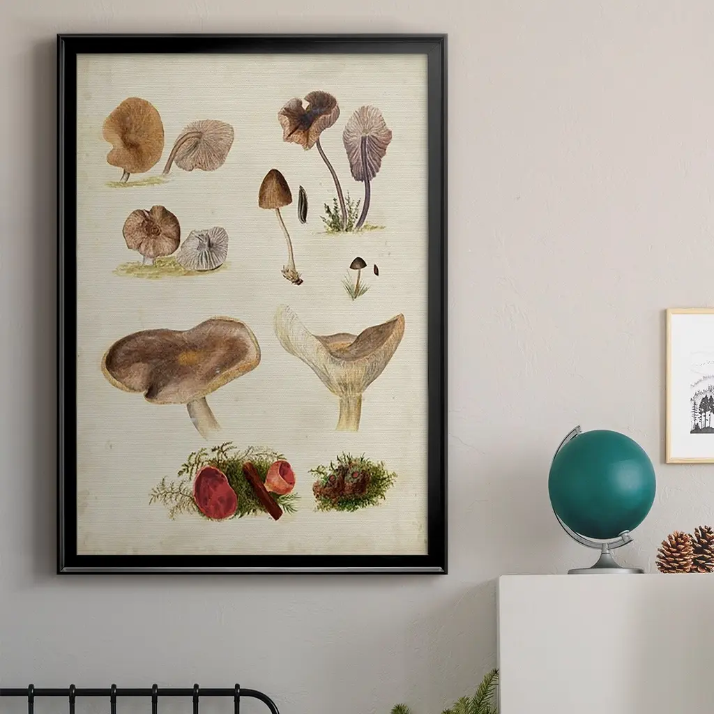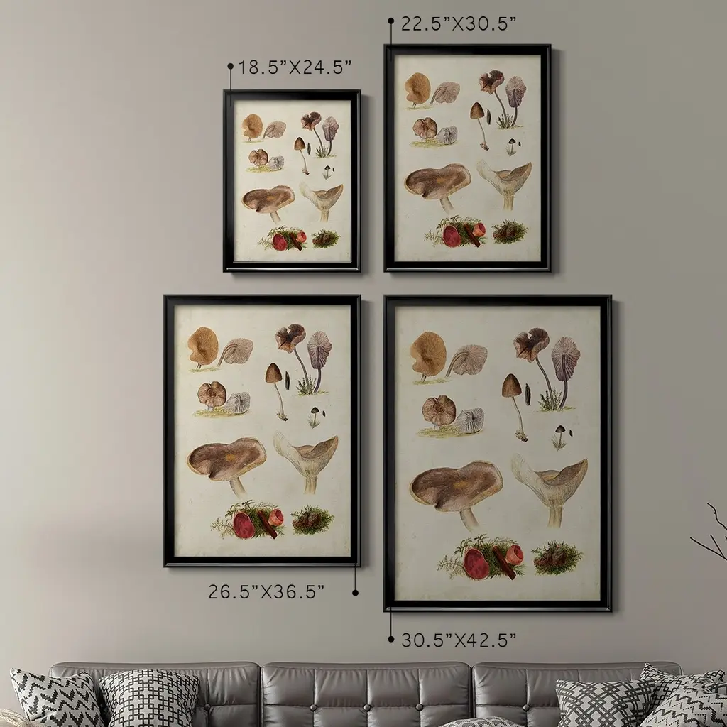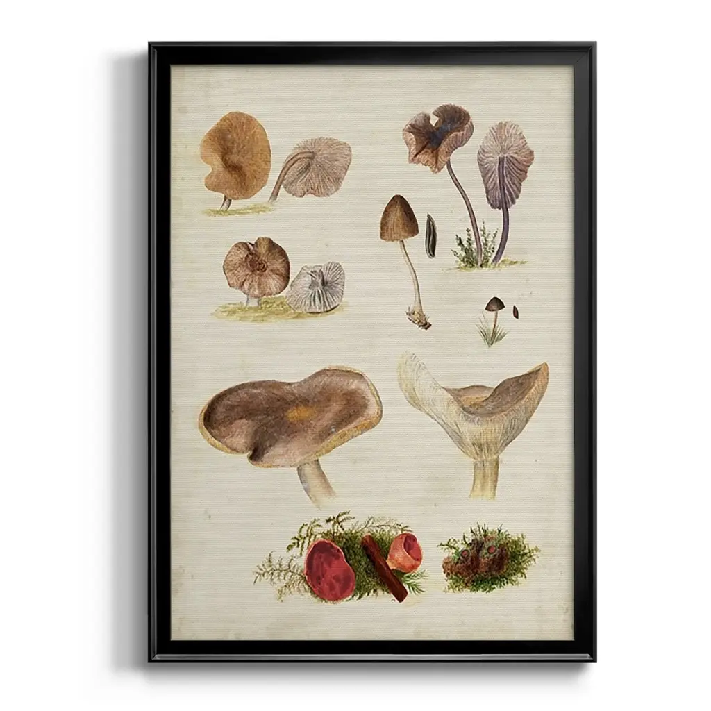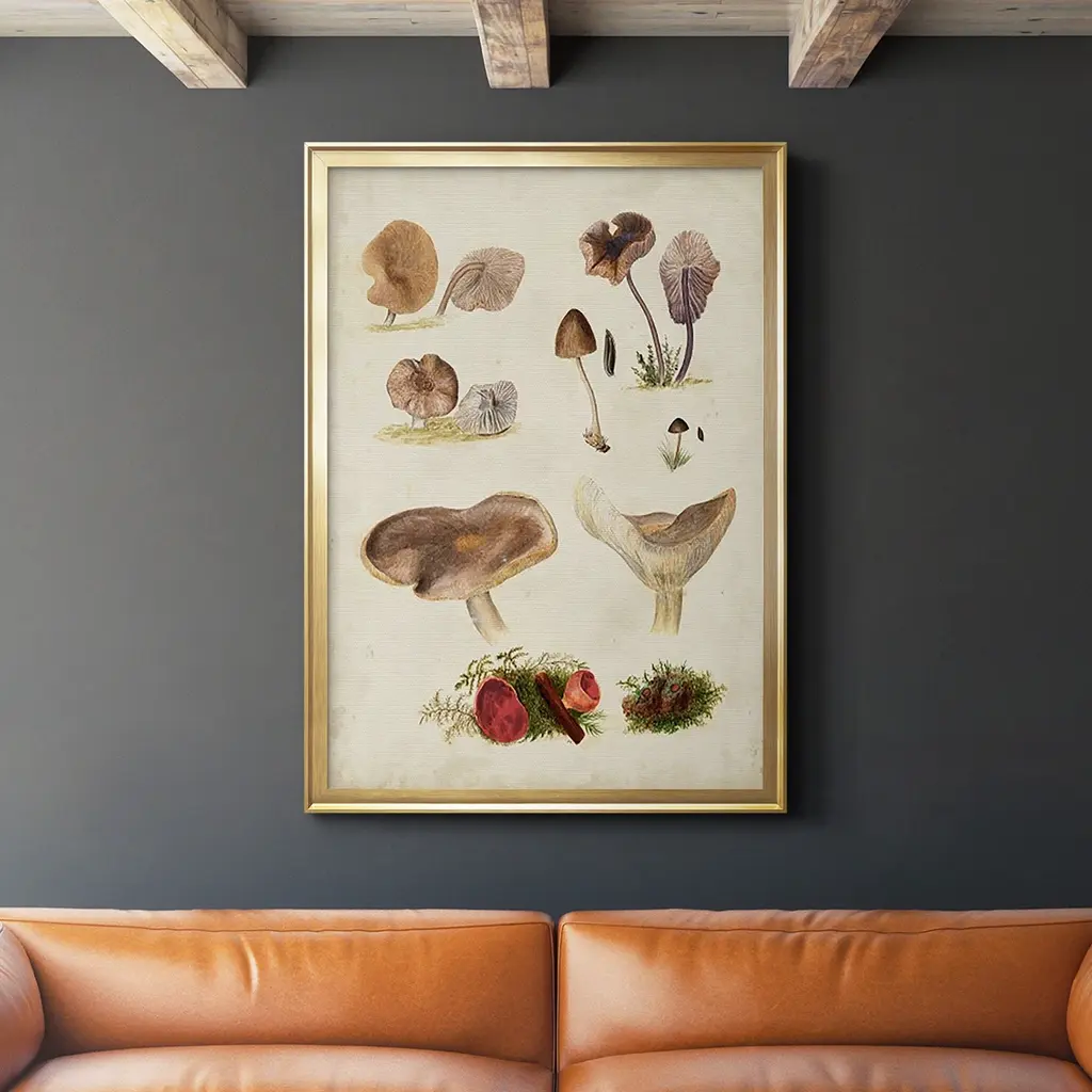 Mushroom Species III Premium Framed Print - Ready to Hang A Premium Framed Print created to last. Framed in distressed wood and available in an array of sizes and colors Featuring a beveled a solid wood stretcher bar, each piece comes ready to hand 4 SIZES AVAILABLE 30.5''X42.5'' - Overall Size 26.5'X36.5'' - Overall Size 22.5''x30.5'' - Overall Size 18.5''x24.5'' - Overall Size Each piece is made to order. Each piece comes with hanging hardware. Made in the USA Ready to Hang