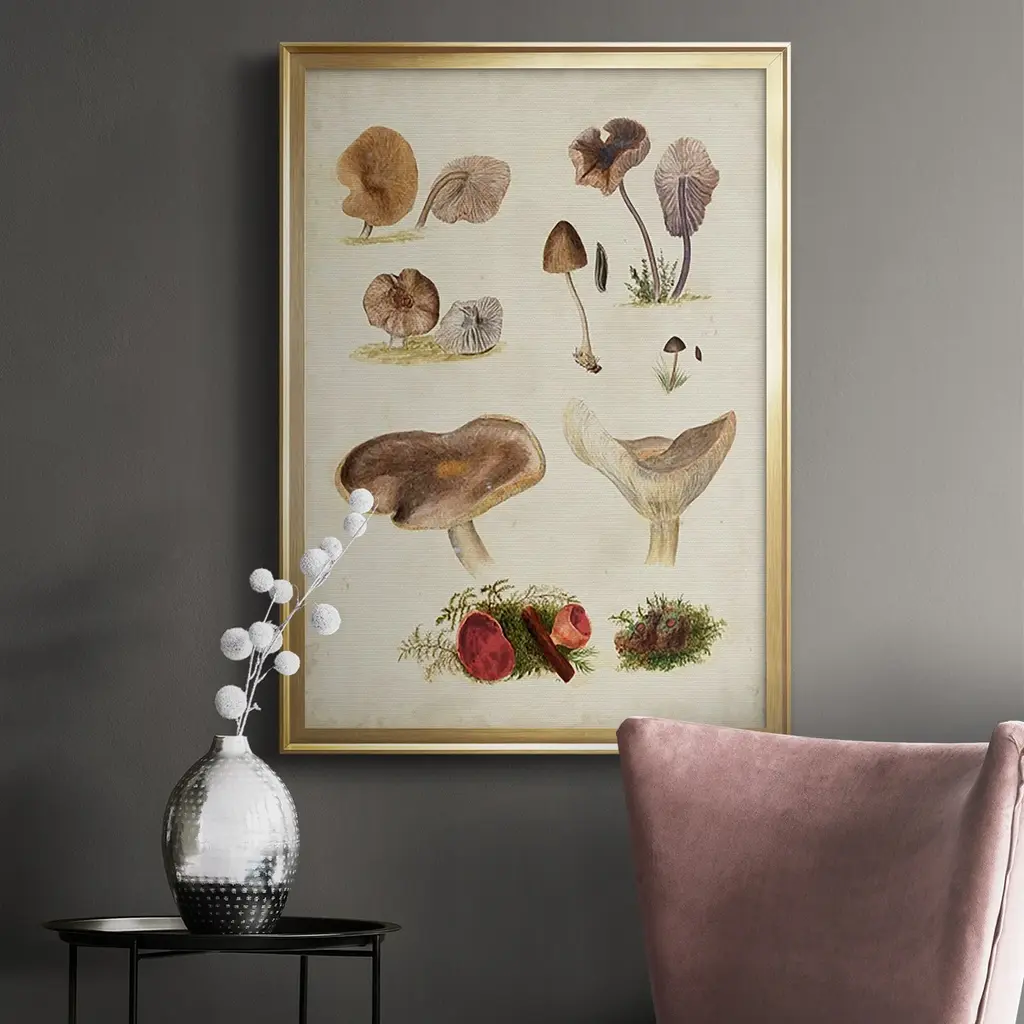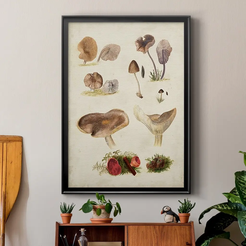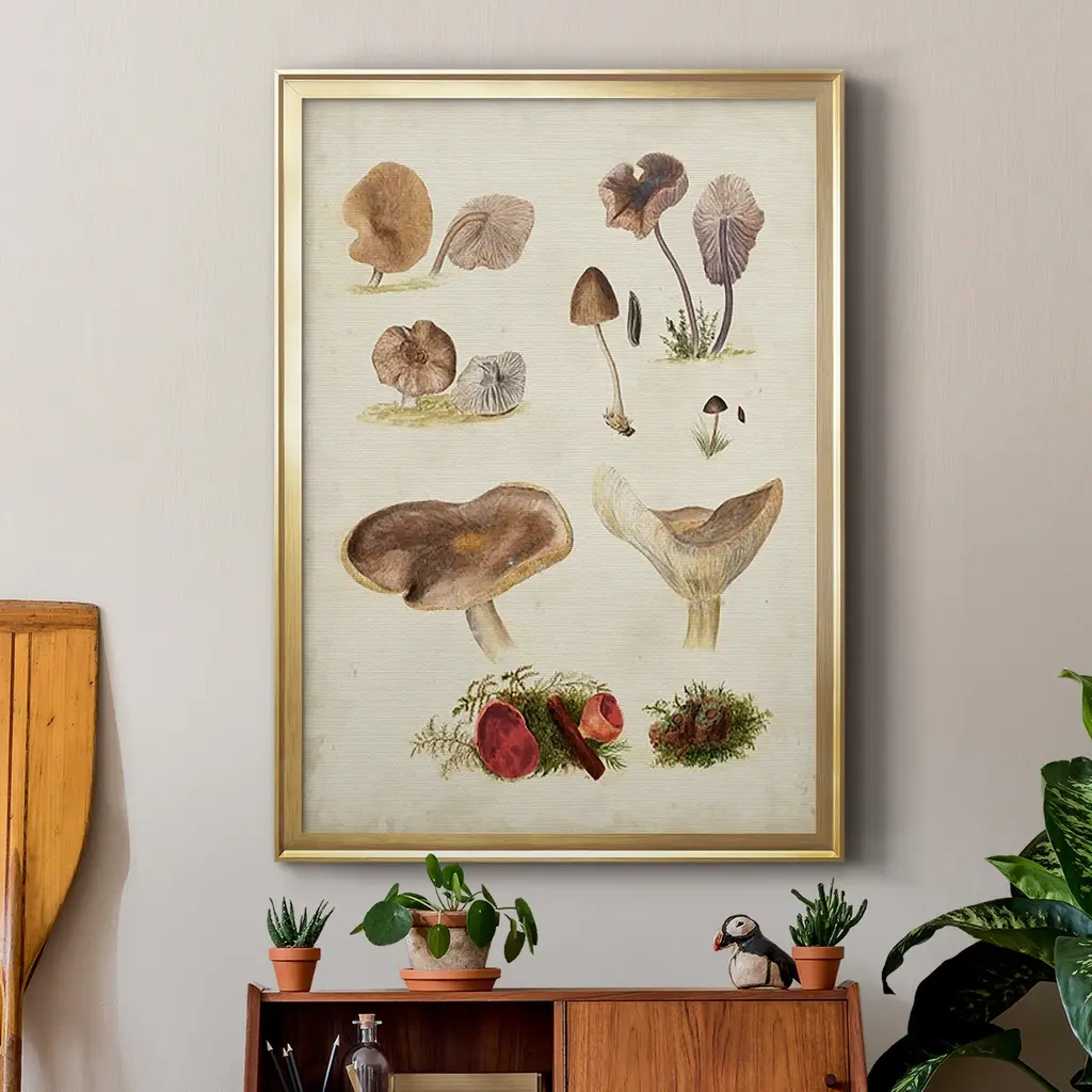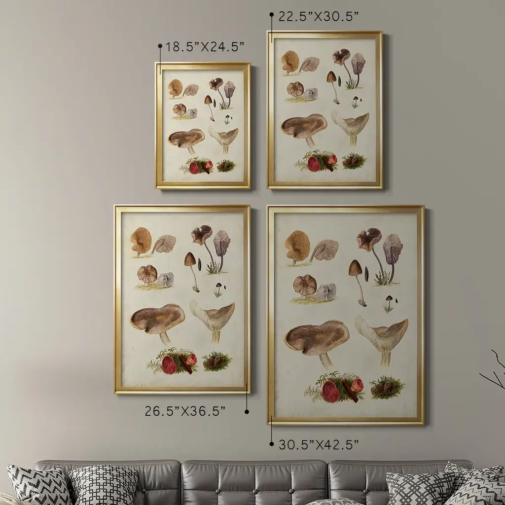 Mushroom Species III Premium Framed Print - Ready to Hang A Premium Framed Print created to last. Framed in distressed wood and available in an array of sizes and colors Featuring a beveled a solid wood stretcher bar, each piece comes ready to hand 4 SIZES AVAILABLE 30.5''X42.5'' - Overall Size 26.5'X36.5'' - Overall Size 22.5''x30.5'' - Overall Size 18.5''x24.5'' - Overall Size Each piece is made to order. Each piece comes with hanging hardware. Made in the USA Ready to Hang