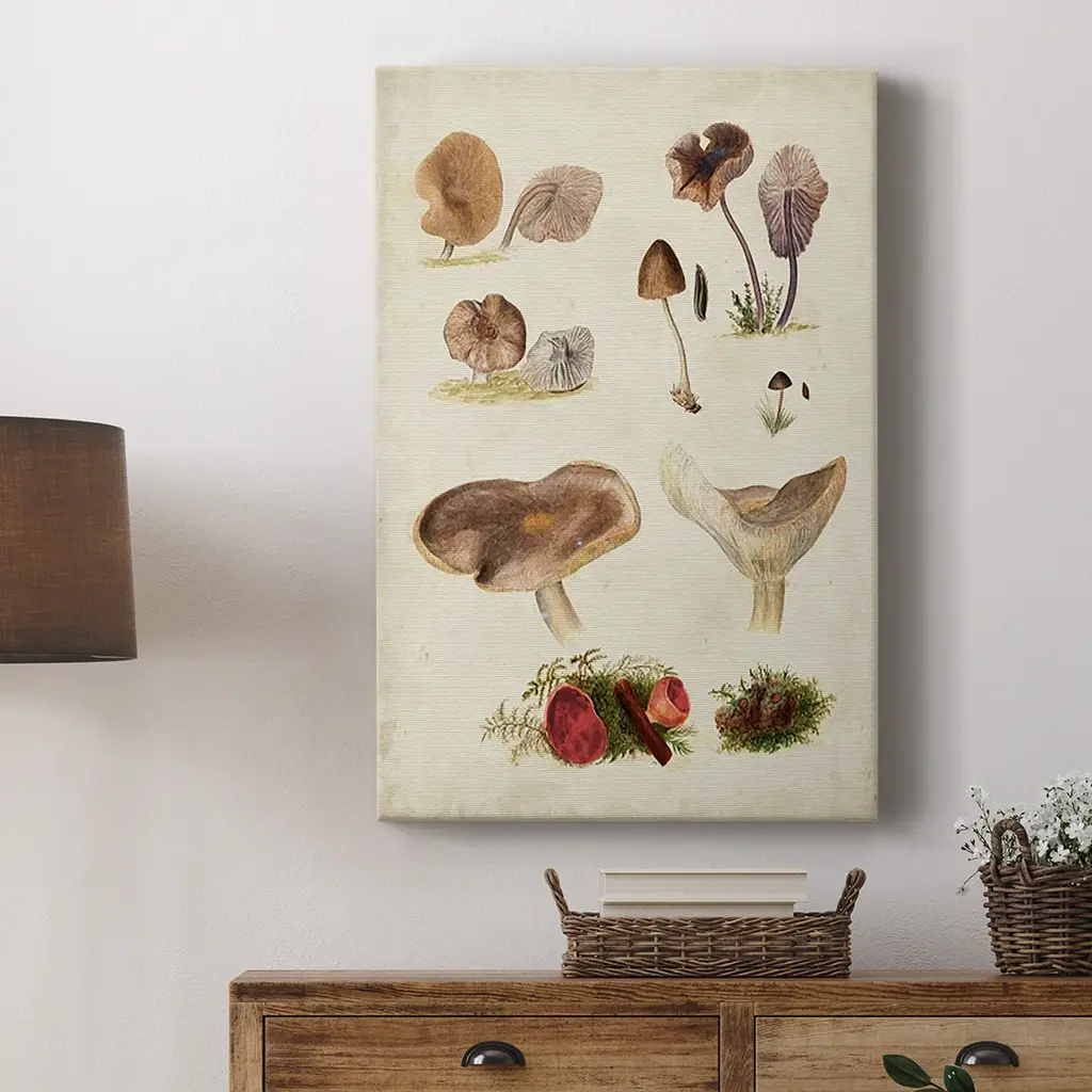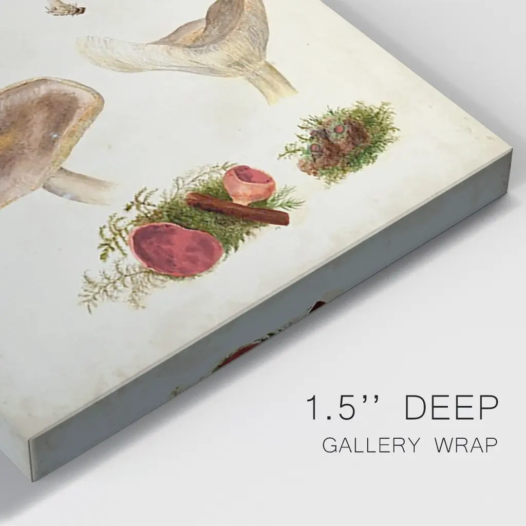Mushroom Species III Premium Gallery Wrapped Canvas - Ready to Hang A premium hand stretched gallery wrapped canvas print created to last. Featuring a beveled a solid wood stretcher bar, each piece comes ready to hand 6 SIZES AVAILABLE 8''X12'' - Overall Size 12''X18'' - Overall Size 18''X27'' - Overall Size 24''x36'' - Overall Size 32''x48'' - Overall Size 40''x60'' - Overall Size Each piece is made to order. Built to Last Each piece comes ready to hang Solid wood stretcher Fade and Water resistant Made domestically