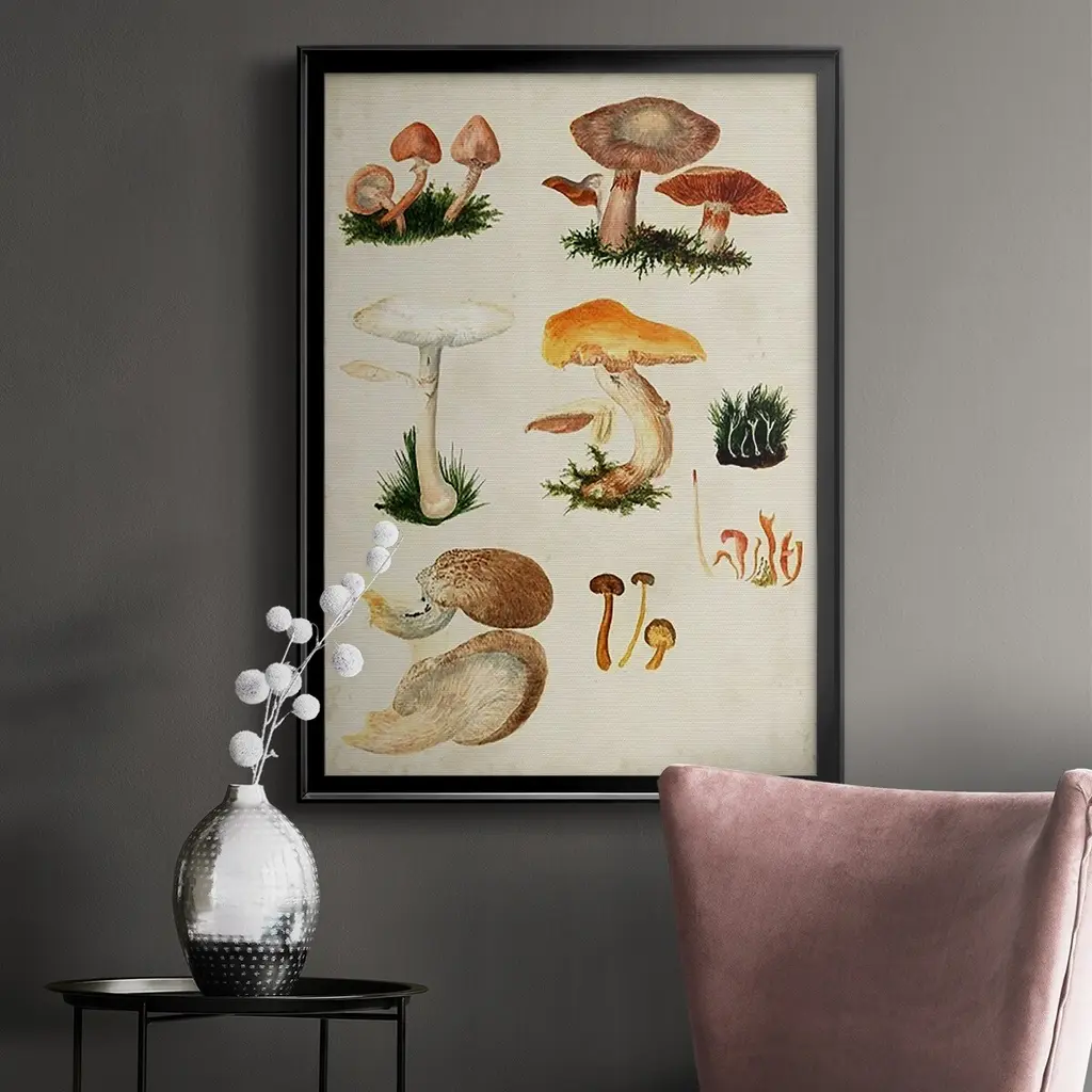 Mushroom Species IV Premium Framed Print - Ready to Hang A Premium Framed Print created to last. Framed in distressed wood and available in an array of sizes and colors Featuring a beveled a solid wood stretcher bar, each piece comes ready to hand 4 SIZES AVAILABLE 30.5''X42.5'' - Overall Size 26.5'X36.5'' - Overall Size 22.5''x30.5'' - Overall Size 18.5''x24.5'' - Overall Size Each piece is made to order. Each piece comes with hanging hardware. Made in the USA Ready to Hang