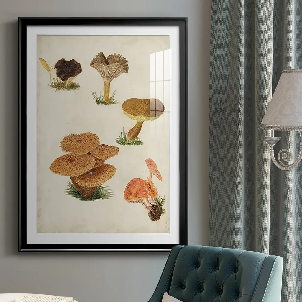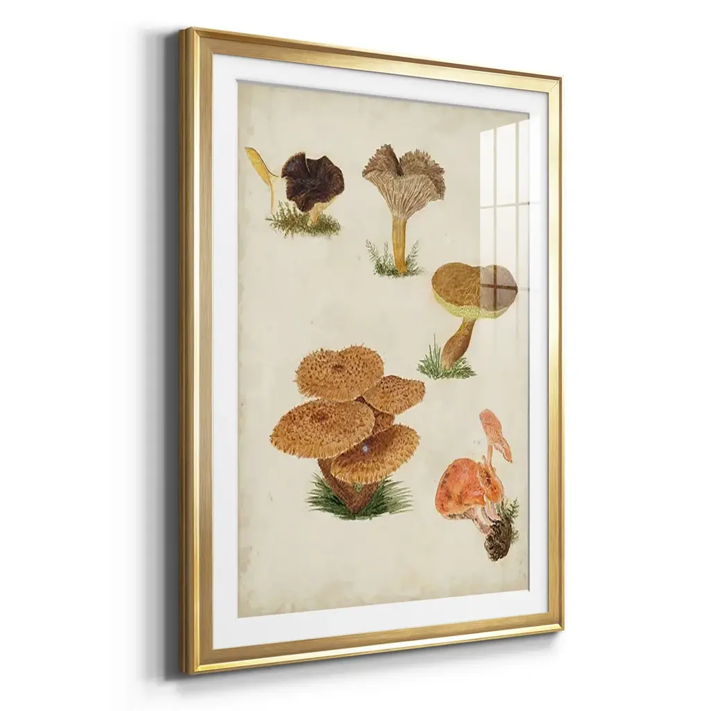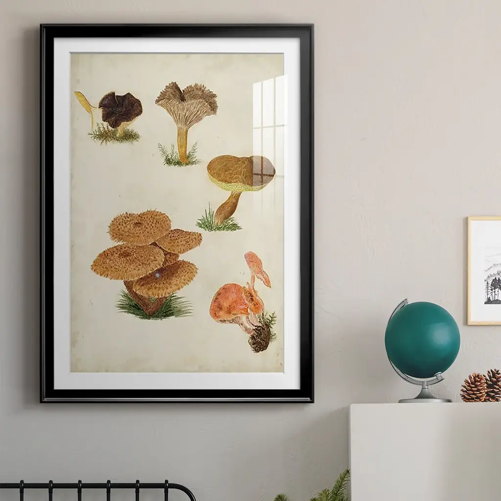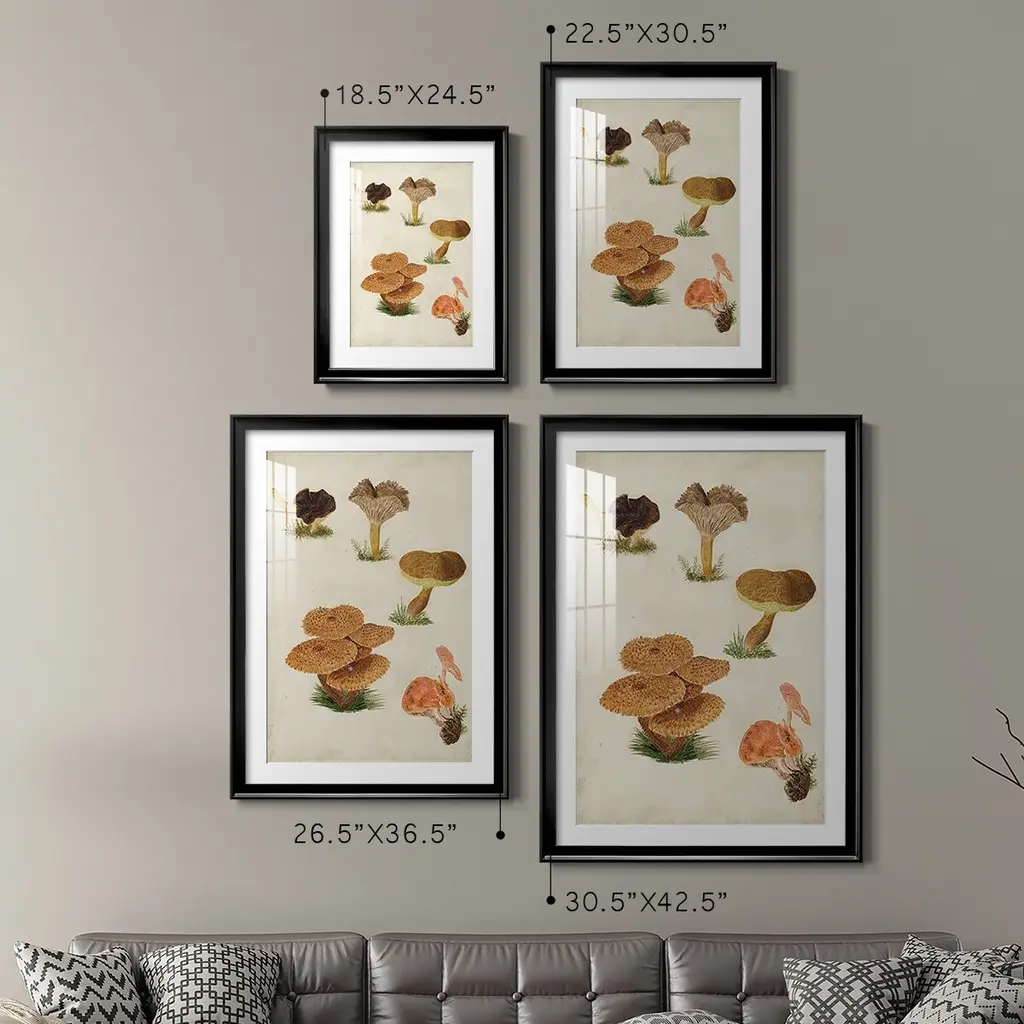 Mushroom Species V Premium Framed Print - Ready to Hang A Premium Framed Print created to last. Framed in distressed wood and available in an array of sizes and colors Featuring a beveled a solid wood stretcher bar, each piece comes ready to hand 4 SIZES AVAILABLE 30.5''X42.5'' - Overall Size 26.5'X36.5'' - Overall Size 22.5''x30.5'' - Overall Size 18.5''x24.5'' - Overall Size Each piece is made to order. Each piece comes with hanging hardware. Made in the USA Ready to Hang Giclee Paper Print Acrylic Glass Beveled Matt Board