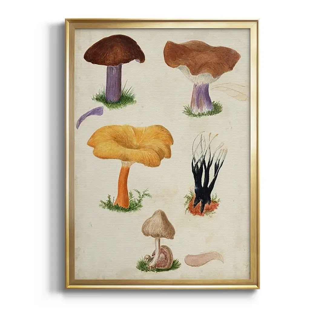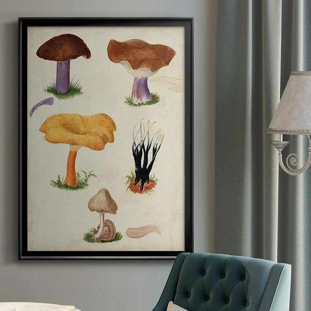 Mushroom Species VII Premium Framed Print - Ready to Hang A Premium Framed Print created to last. Framed in distressed wood and available in an array of sizes and colors Featuring a beveled a solid wood stretcher bar, each piece comes ready to hand 4 SIZES AVAILABLE 30.5''X42.5'' - Overall Size 26.5'X36.5'' - Overall Size 22.5''x30.5'' - Overall Size 18.5''x24.5'' - Overall Size Each piece is made to order. Each piece comes with hanging hardware. Made in the USA Ready to Hang