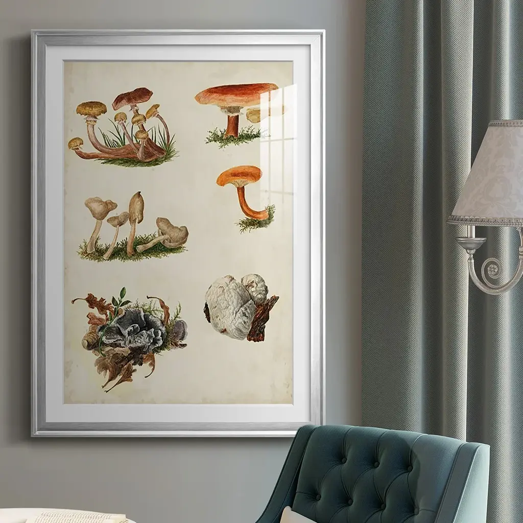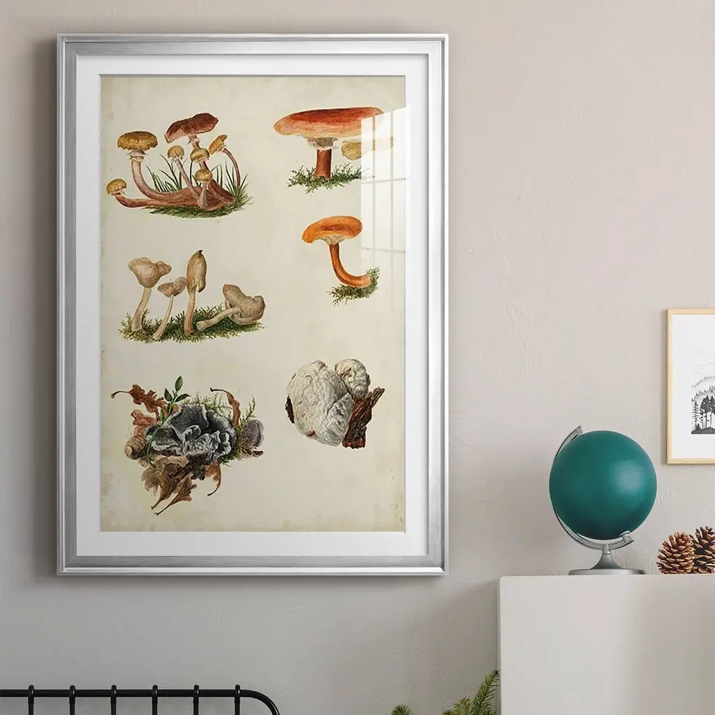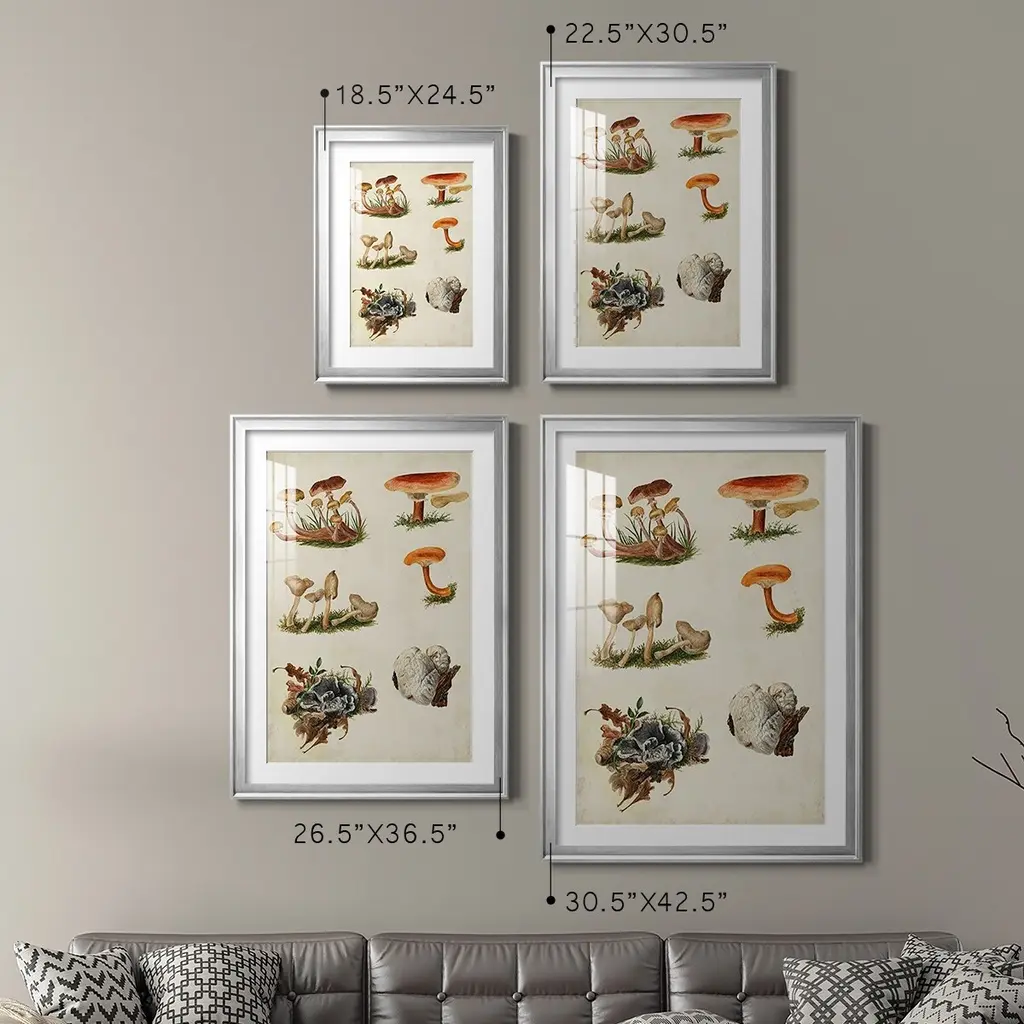 Mushroom Species X Premium Framed Print - Ready to Hang A Premium Framed Print created to last. Framed in distressed wood and available in an array of sizes and colors Featuring a beveled a solid wood stretcher bar, each piece comes ready to hand 4 SIZES AVAILABLE 30.5''X42.5'' - Overall Size 26.5'X36.5'' - Overall Size 22.5''x30.5'' - Overall Size 18.5''x24.5'' - Overall Size Each piece is made to order. Each piece comes with hanging hardware. Made in the USA Ready to Hang Giclee Paper Print Acrylic Glass Beveled Matt Board