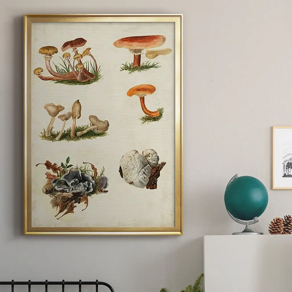 Mushroom Species X Premium Framed Print - Ready to Hang A Premium Framed Print created to last. Framed in distressed wood and available in an array of sizes and colors Featuring a beveled a solid wood stretcher bar, each piece comes ready to hand 4 SIZES AVAILABLE 30.5''X42.5'' - Overall Size 26.5'X36.5'' - Overall Size 22.5''x30.5'' - Overall Size 18.5''x24.5'' - Overall Size Each piece is made to order. Each piece comes with hanging hardware. Made in the USA Ready to Hang