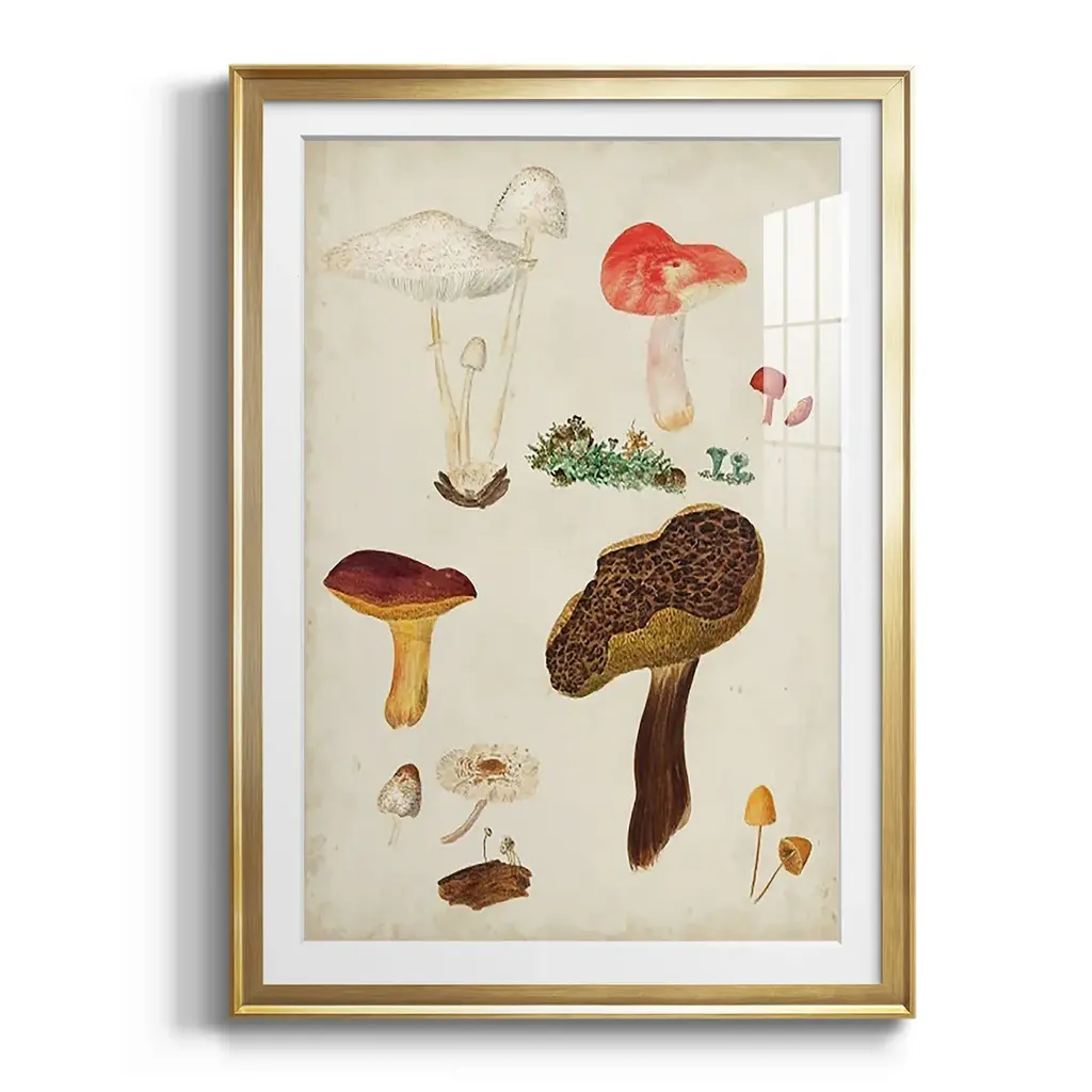 Mushroom Species XI Premium Framed Print - Ready to Hang A Premium Framed Print created to last. Framed in distressed wood and available in an array of sizes and colors Featuring a beveled a solid wood stretcher bar, each piece comes ready to hand 4 SIZES AVAILABLE 30.5''X42.5'' - Overall Size 26.5'X36.5'' - Overall Size 22.5''x30.5'' - Overall Size 18.5''x24.5'' - Overall Size Each piece is made to order. Each piece comes with hanging hardware. Made in the USA Ready to Hang Giclee Paper Print Acrylic Glass Beveled Matt Board
