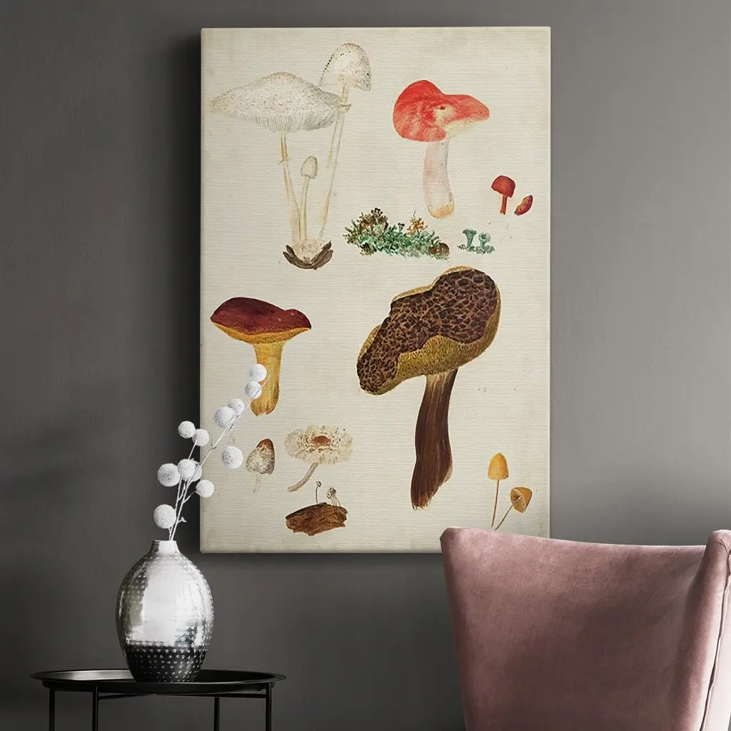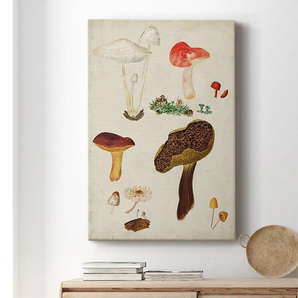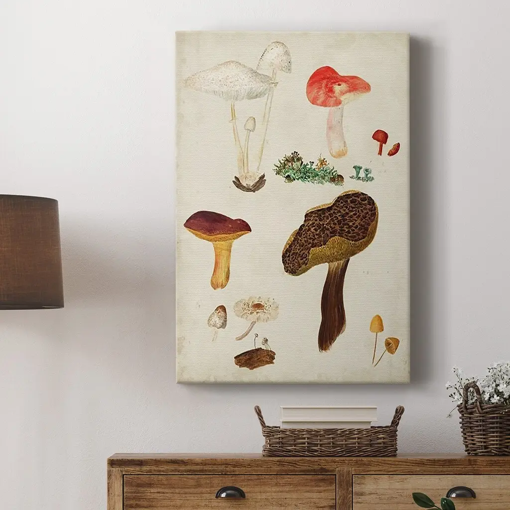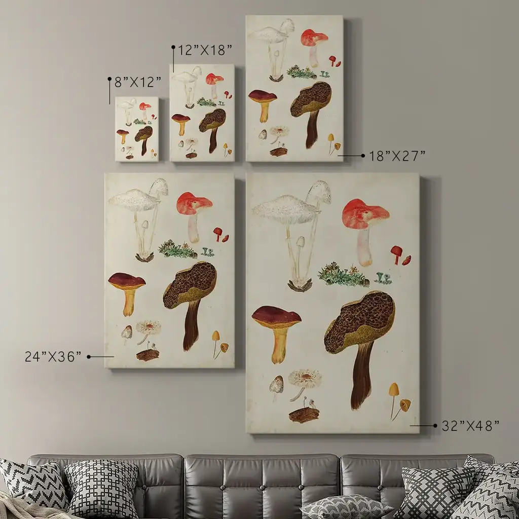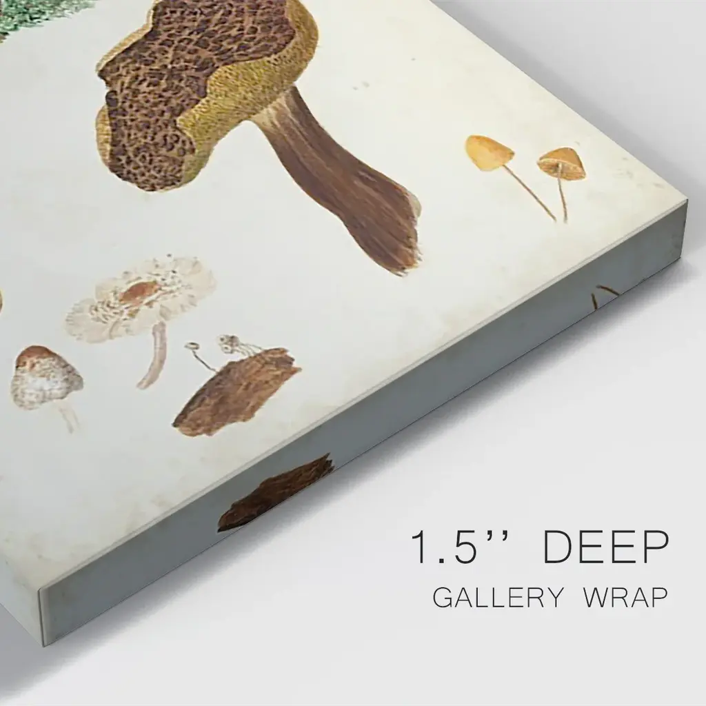 Mushroom Species XI Premium Gallery Wrapped Canvas - Ready to Hang A premium hand stretched gallery wrapped canvas print created to last. Featuring a beveled a solid wood stretcher bar, each piece comes ready to hand 6 SIZES AVAILABLE 8''X12'' - Overall Size 12''X18'' - Overall Size 18''X27'' - Overall Size 24''x36'' - Overall Size 32''x48'' - Overall Size 40''x60'' - Overall Size Each piece is made to order. Built to Last Each piece comes ready to hang Solid wood stretcher Fade and Water resistant Made domestically