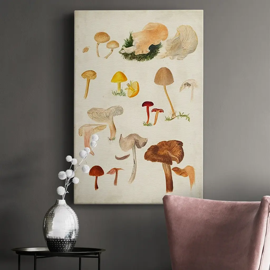 Mushroom Species XII Premium Gallery Wrapped Canvas - Ready to Hang A premium hand stretched gallery wrapped canvas print created to last. Featuring a beveled a solid wood stretcher bar, each piece comes ready to hand 6 SIZES AVAILABLE 8''X12'' - Overall Size 12''X18'' - Overall Size 18''X27'' - Overall Size 24''x36'' - Overall Size 32''x48'' - Overall Size 40''x60'' - Overall Size Each piece is made to order. Built to Last Each piece comes ready to hang Solid wood stretcher Fade and Water resistant Made domestically