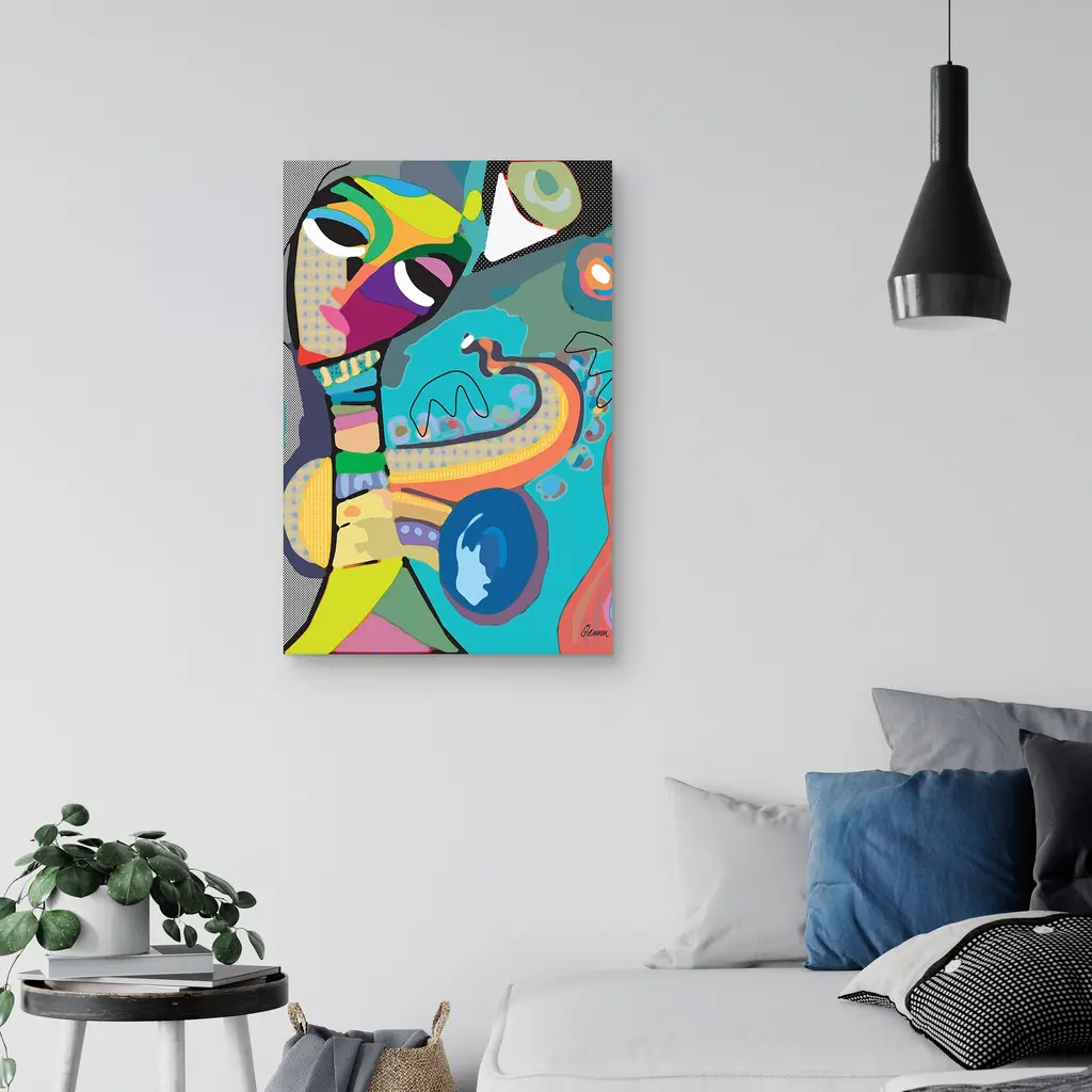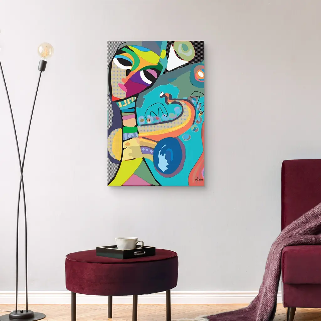 Music Saxist by Michele Glennon Canvas Art Print is produced with printing that covers the entirety of the canvas for a sleek and stylish museum-quality look. Our framed prints are made by expert craftsmen who strive to make each canvas the masterpiece