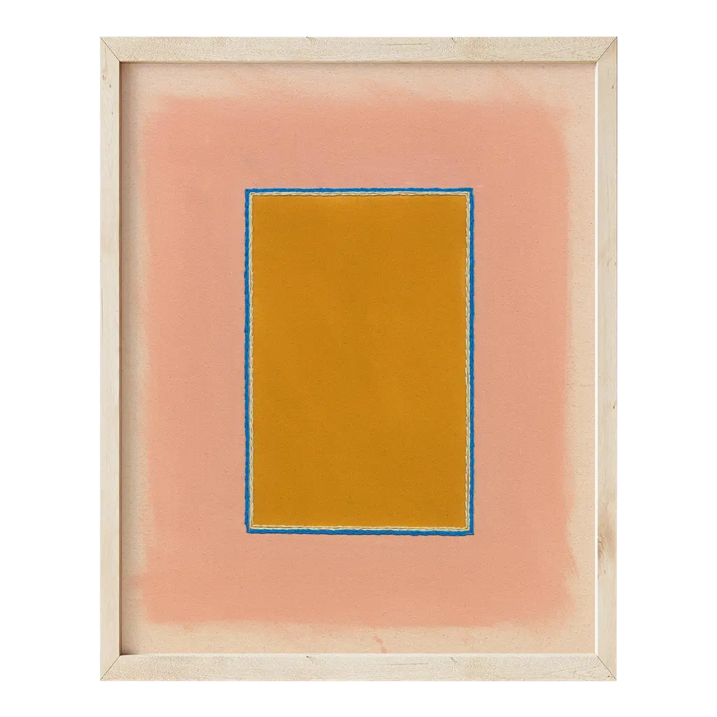 Rose Gold' Fine Art Print by Emily Keating Snyder Print itself is 38 x 30 in. and framed in a light wood frame with UV-shield plexiglass (approx. 39.25" x 31.25" overall) Printed on archival matte paper (no physical embroidery is present in the print) Note: Colors may appear slightly different in person due to screen variations. About the Artist: Emily Keating Snyder incorporates embroidery into her colorful minimalist abstract paintings. Her archival fine art prints visually highlight the dimensional quality of the originals. Emily's work has been featured by Anthropologie, Real Simple, Emily Henderson, Clever and Parachute Home.
