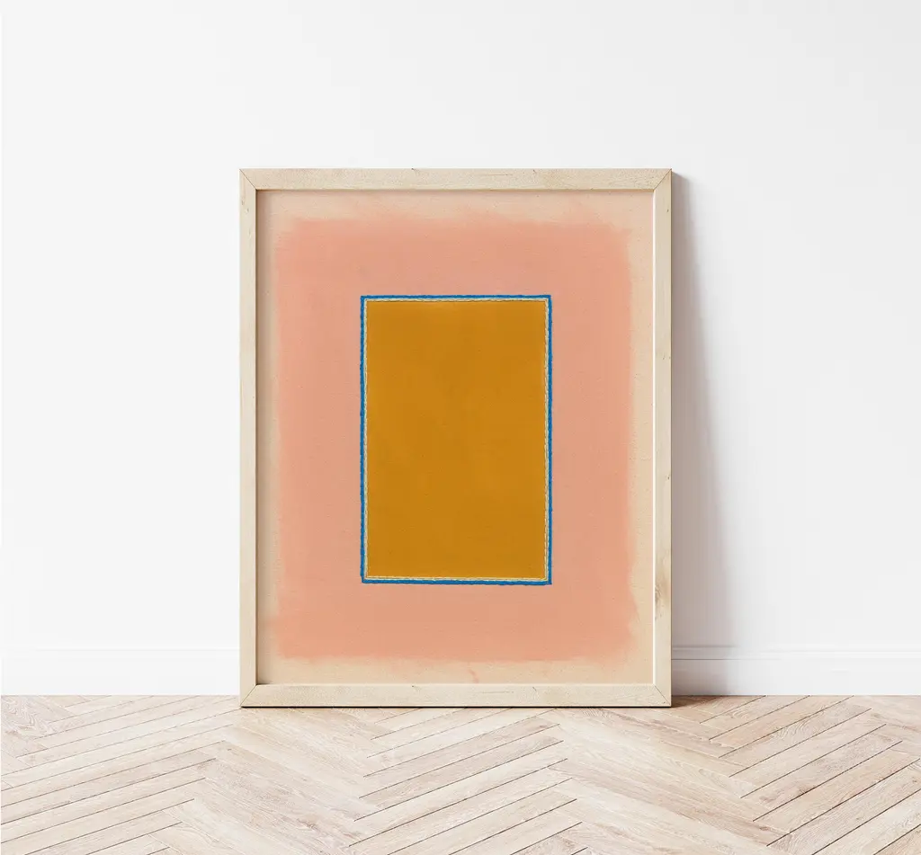 Mustard Gold & Blush Pink Minimalist Color Field Art Print, Emily Keating Snyder, 38 X 30 Print In Wood Frame