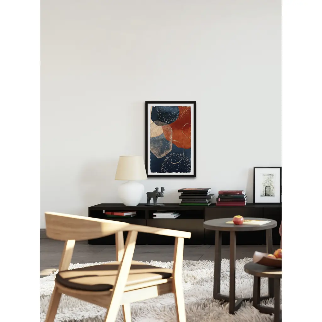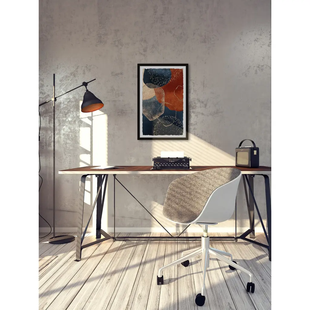 From glitter to colorful fireworks, this abstract watercolor painting print can be anything you want it to be, featuring abstract shapes in navy blue, brown and beige colors. Proudly printed in the USA, this piece is printed on high quality archive paper and professionally hand-framed. With wall-mounting hooks included, this artful accent is ready to hang up as soon as it reaches your front door. • Top quality Giclee print on high resolution Archive Paper • Hand cut deckled edges • High quality durable non-warping frame • Finished under shatter resistant plexiglass • Arrives ready to hang • Includes a certificate of authenticity • Printed in the USA