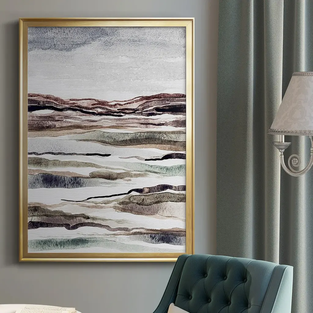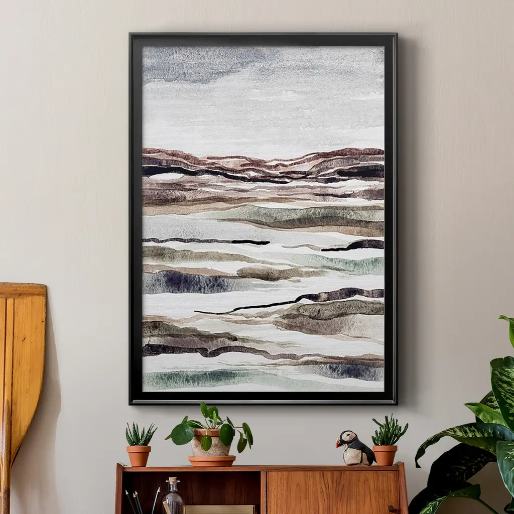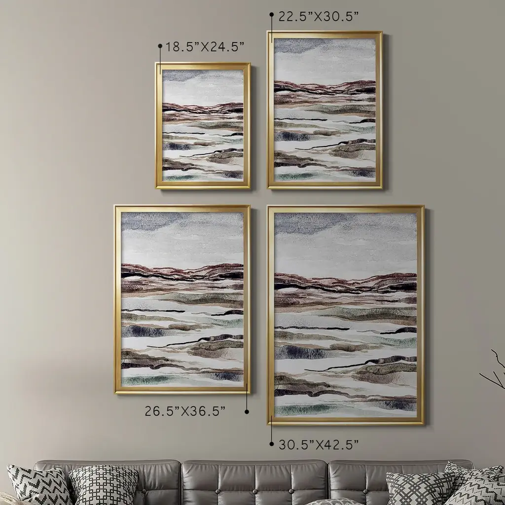 Muted Earth Layers II Premium Framed Print - Ready to Hang A Premium Framed Print created to last. Framed in distressed wood and available in an array of sizes and colors Featuring a beveled a solid wood stretcher bar, each piece comes ready to hand 4 SIZES AVAILABLE 30.5''X42.5'' - Overall Size 26.5'X36.5'' - Overall Size 22.5''x30.5'' - Overall Size 18.5''x24.5'' - Overall Size Each piece is made to order. Each piece comes with hanging hardware. Made in the USA Ready to Hang
