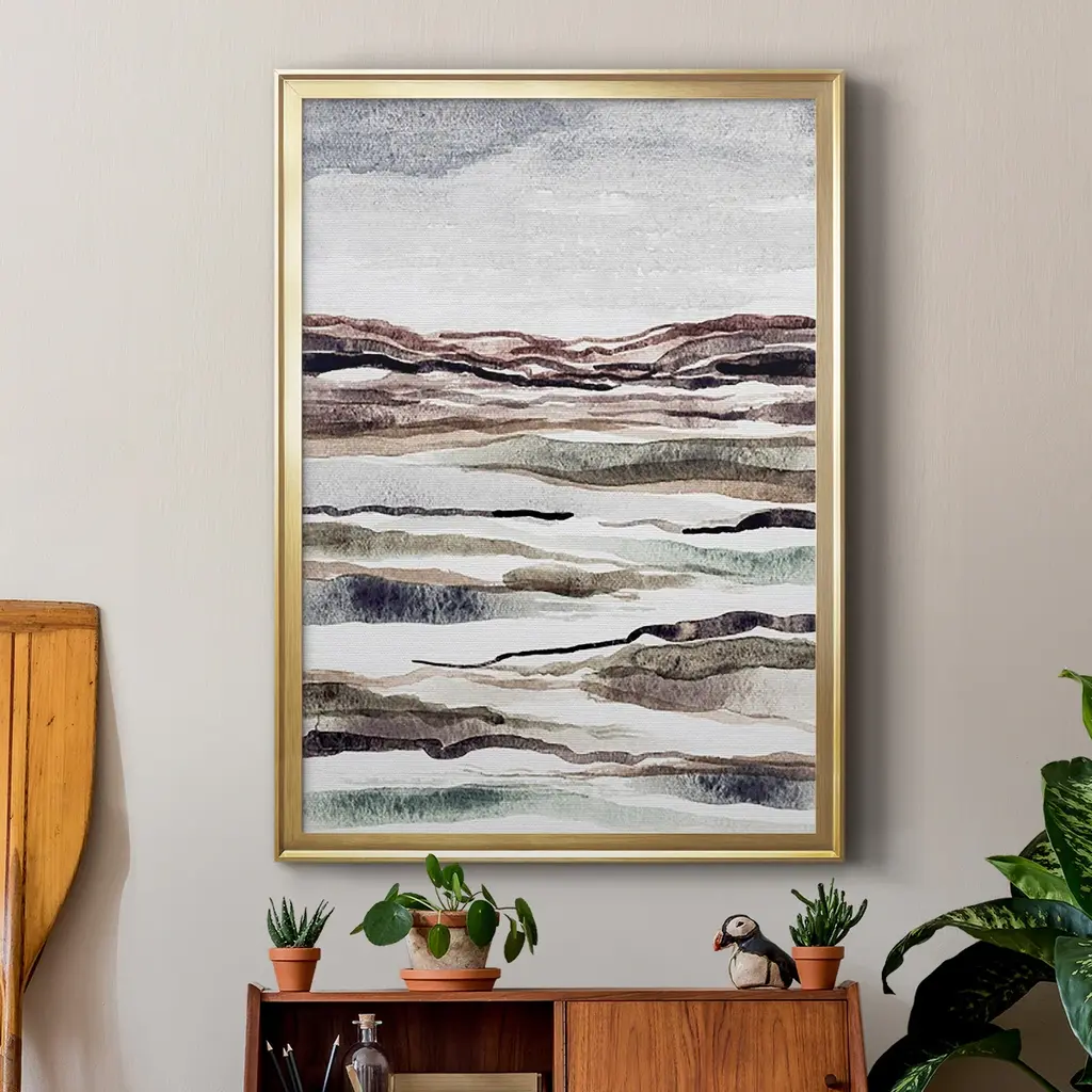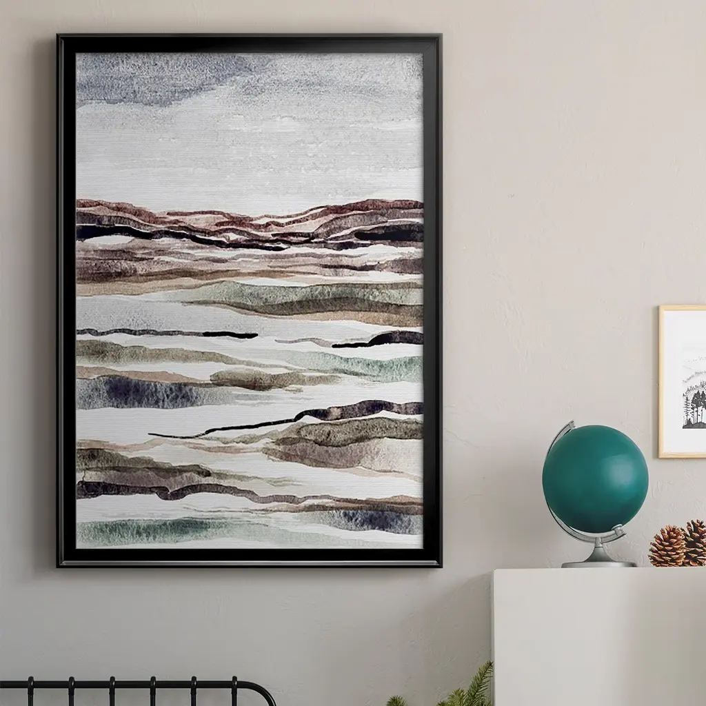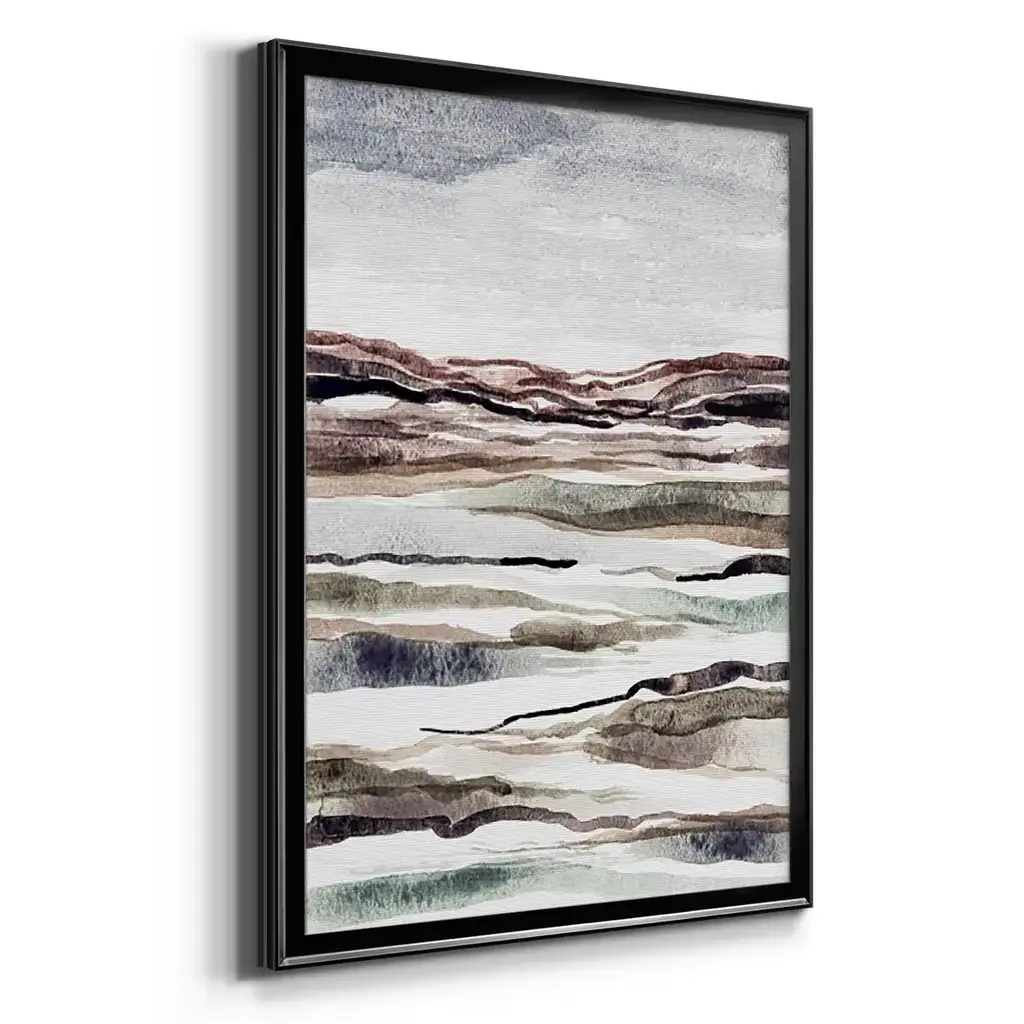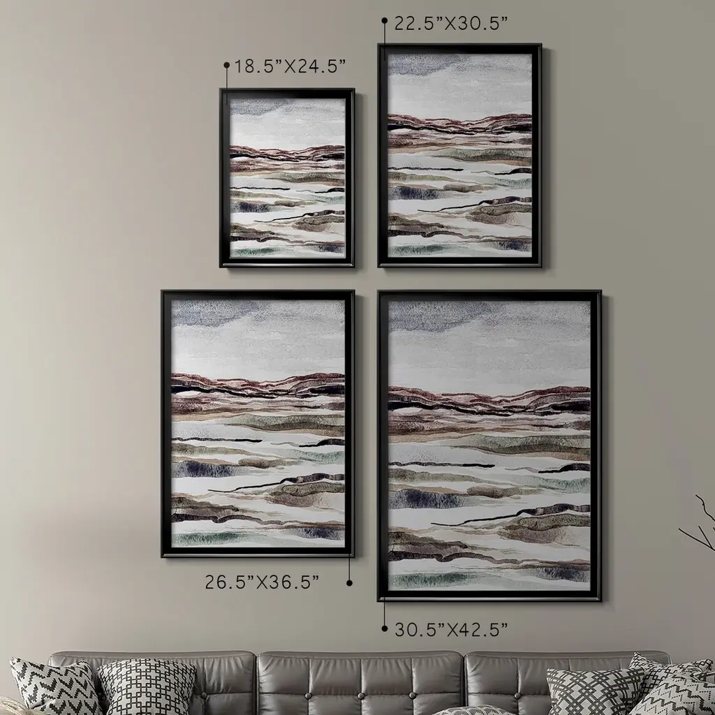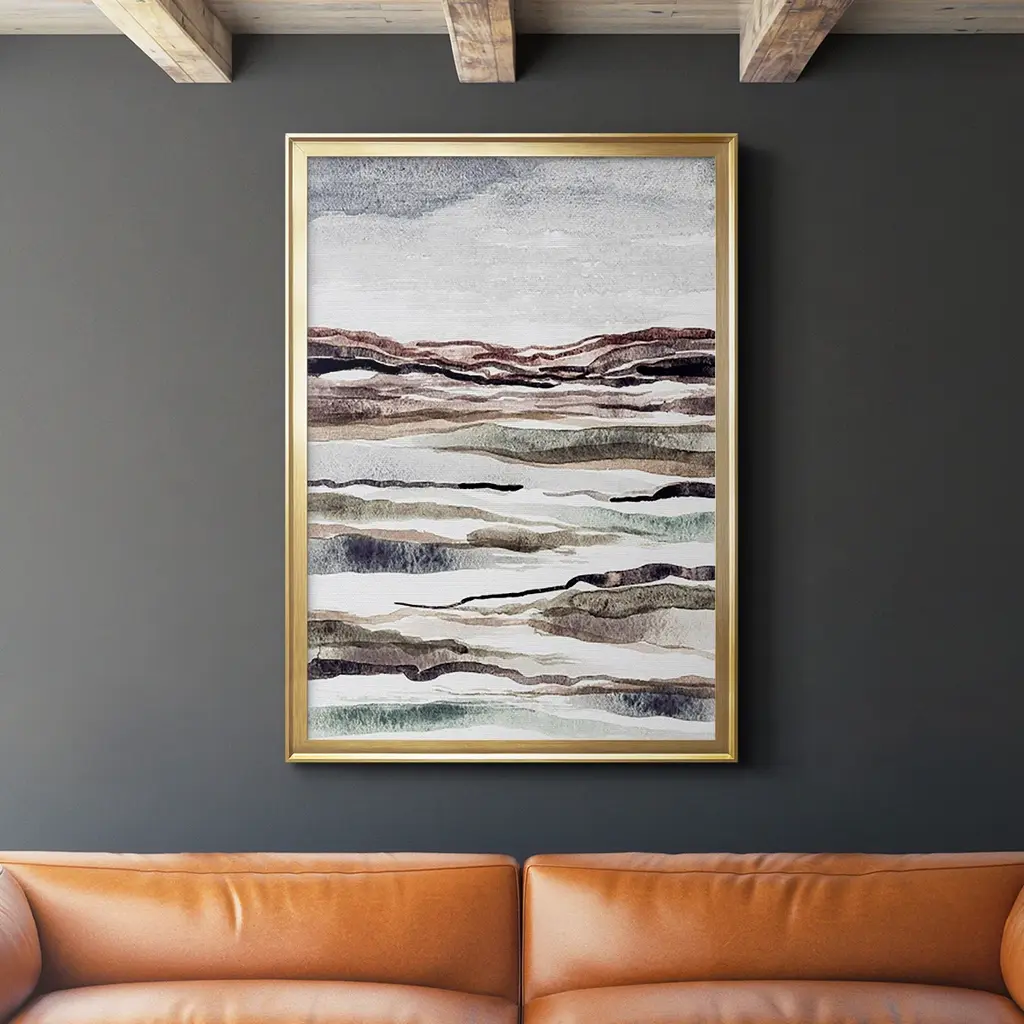 Muted Earth Layers II Premium Framed Print - Ready to Hang A Premium Framed Print created to last. Framed in distressed wood and available in an array of sizes and colors Featuring a beveled a solid wood stretcher bar, each piece comes ready to hand 4 SIZES AVAILABLE 30.5''X42.5'' - Overall Size 26.5'X36.5'' - Overall Size 22.5''x30.5'' - Overall Size 18.5''x24.5'' - Overall Size Each piece is made to order. Each piece comes with hanging hardware. Made in the USA Ready to Hang
