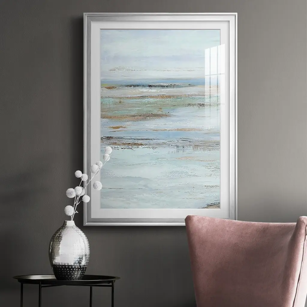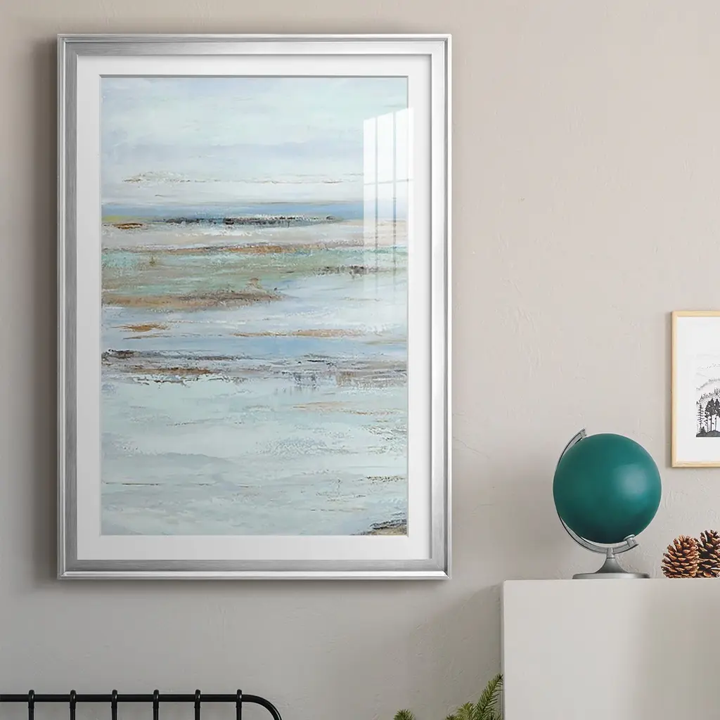 Muted Misty Marsh I Premium Framed Print - Ready to Hang A Premium Framed Print created to last. Framed in distressed wood and available in an array of sizes and colors Featuring a beveled a solid wood stretcher bar, each piece comes ready to hand 4 SIZES AVAILABLE 30.5''X42.5'' - Overall Size 26.5'X36.5'' - Overall Size 22.5''x30.5'' - Overall Size 18.5''x24.5'' - Overall Size Each piece is made to order. Each piece comes with hanging hardware. Made in the USA Ready to Hang Giclee Paper Print Acrylic Glass Beveled Matt Board