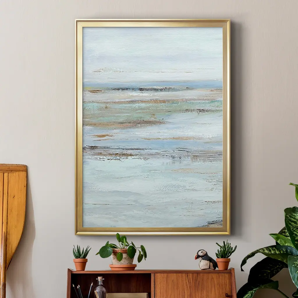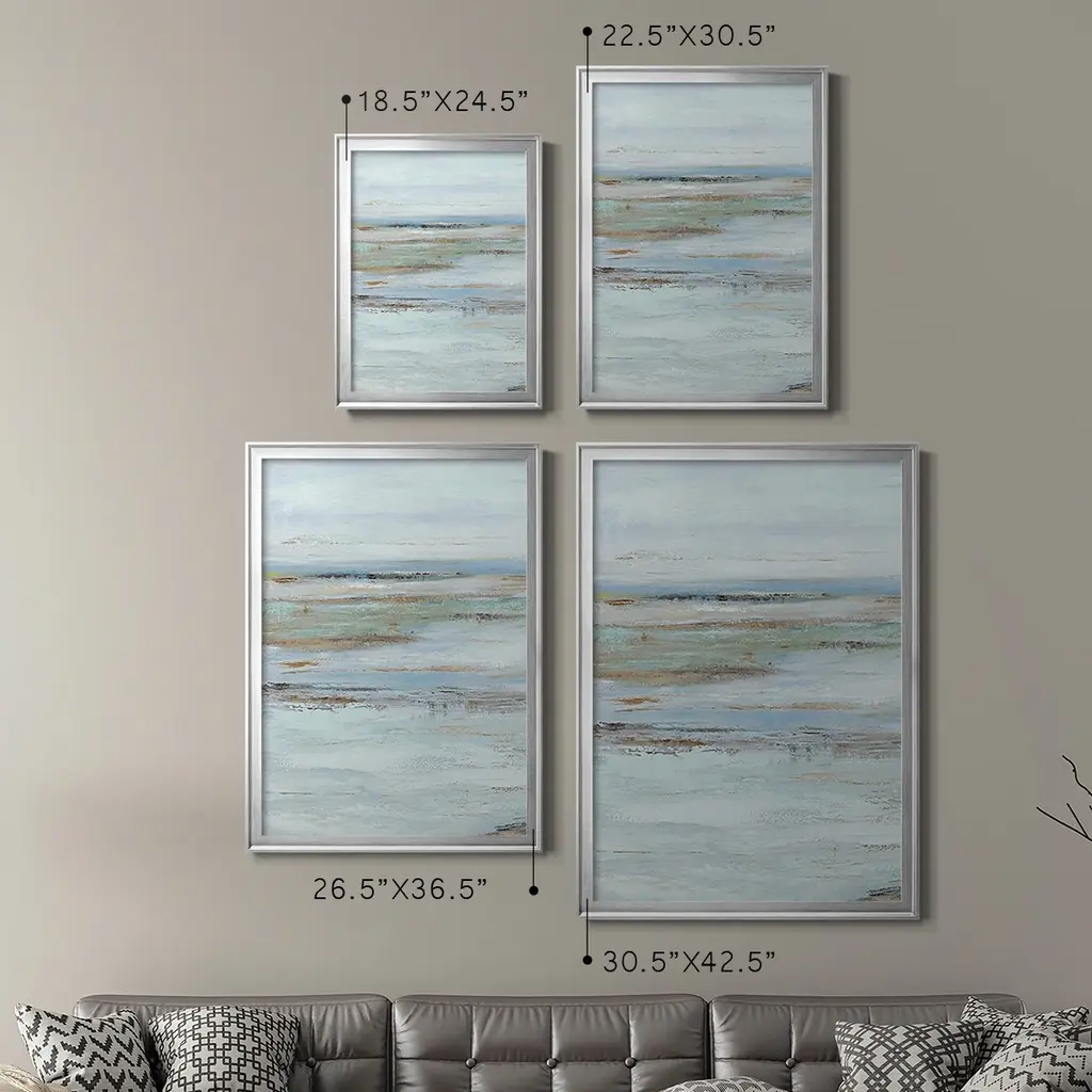 Muted Misty Marsh I Premium Framed Print - Ready to Hang A Premium Framed Print created to last. Framed in distressed wood and available in an array of sizes and colors Featuring a beveled a solid wood stretcher bar, each piece comes ready to hand 4 SIZES AVAILABLE 30.5''X42.5'' - Overall Size 26.5'X36.5'' - Overall Size 22.5''x30.5'' - Overall Size 18.5''x24.5'' - Overall Size Each piece is made to order. Each piece comes with hanging hardware. Made in the USA Ready to Hang