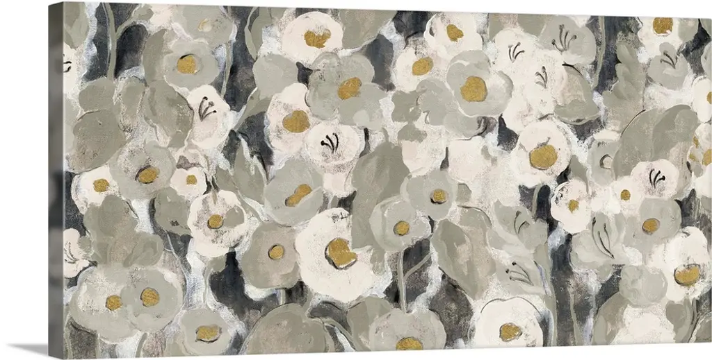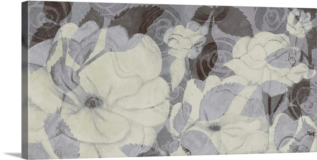 A floral painting with muted colors.
