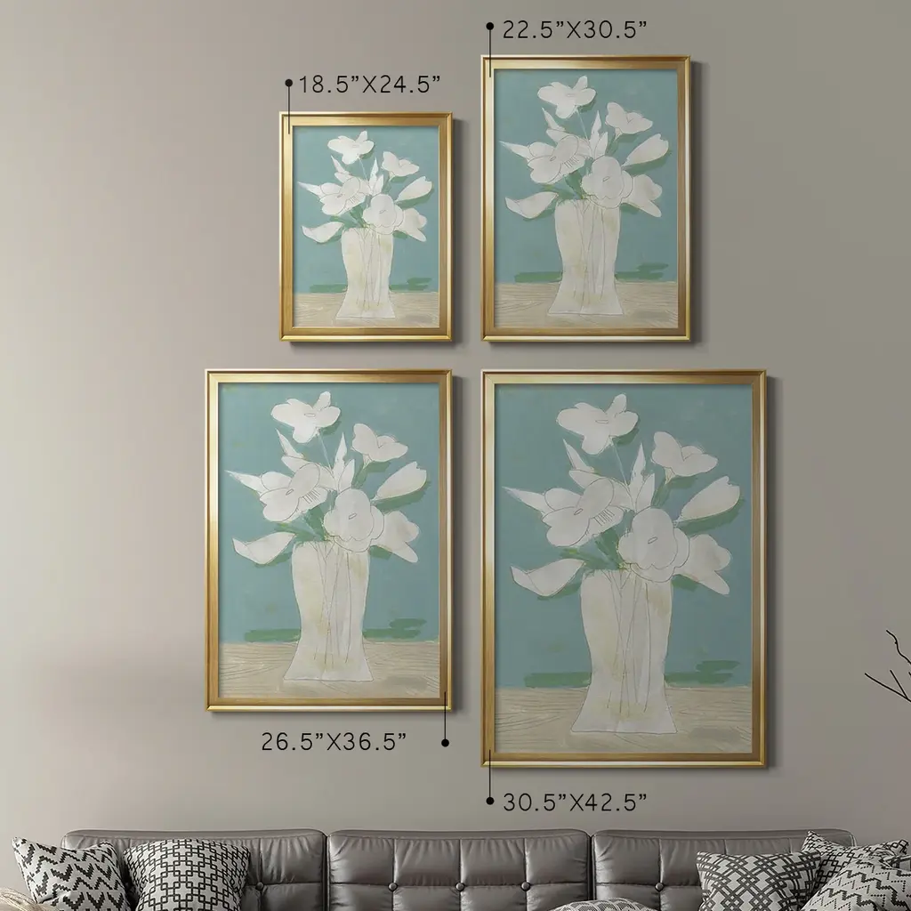 Muted Spring Arrangement I Premium Framed Print - Ready to Hang A Premium Framed Print created to last. Framed in distressed wood and available in an array of sizes and colors Featuring a beveled a solid wood stretcher bar, each piece comes ready to hand 4 SIZES AVAILABLE 30.5''X42.5'' - Overall Size 26.5'X36.5'' - Overall Size 22.5''x30.5'' - Overall Size 18.5''x24.5'' - Overall Size Each piece is made to order. Each piece comes with hanging hardware. Made in the USA Ready to Hang