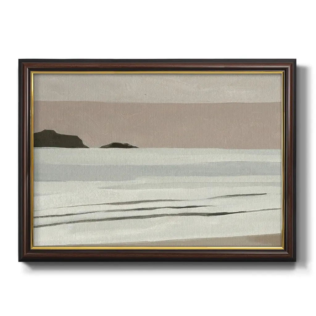 Muted Tonal Horizon I Premium Framed Canvas- Ready to Hang A Premium Framed Canvas created to last. Framed in distressed wood and available in an array of sizes and colors Featuring a beveled a solid wood stretcher bar, each piece comes ready to hand 3 SIZES AVAILABLE 16''X20'' - Overall Size 18'X27'' - Overall Size 24''x36'' - Overall Size Each piece is made to order. Each piece comes with hanging hardware. Made in the USA Ready to Hang Giclee Paper Print Acrylic Glass Beveled Matt Board