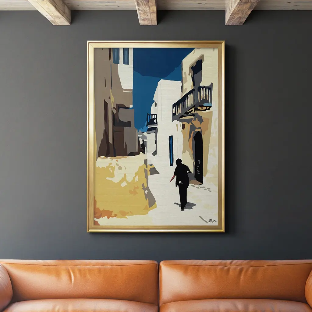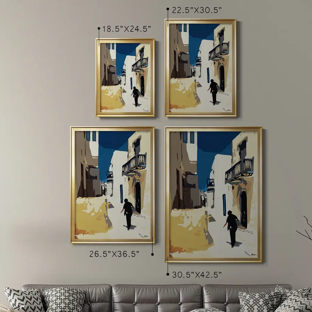 Mykonos 3 Premium Framed Print - Ready to Hang A Premium Framed Print created to last. Framed in distressed wood and available in an array of sizes and colors Featuring a beveled a solid wood stretcher bar, each piece comes ready to hand 4 SIZES AVAILABLE 30.5''X42.5'' - Overall Size 26.5'X36.5'' - Overall Size 22.5''x30.5'' - Overall Size 18.5''x24.5'' - Overall Size Each piece is made to order. Each piece comes with hanging hardware. Made in the USA Ready to Hang