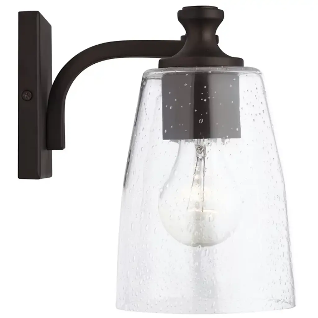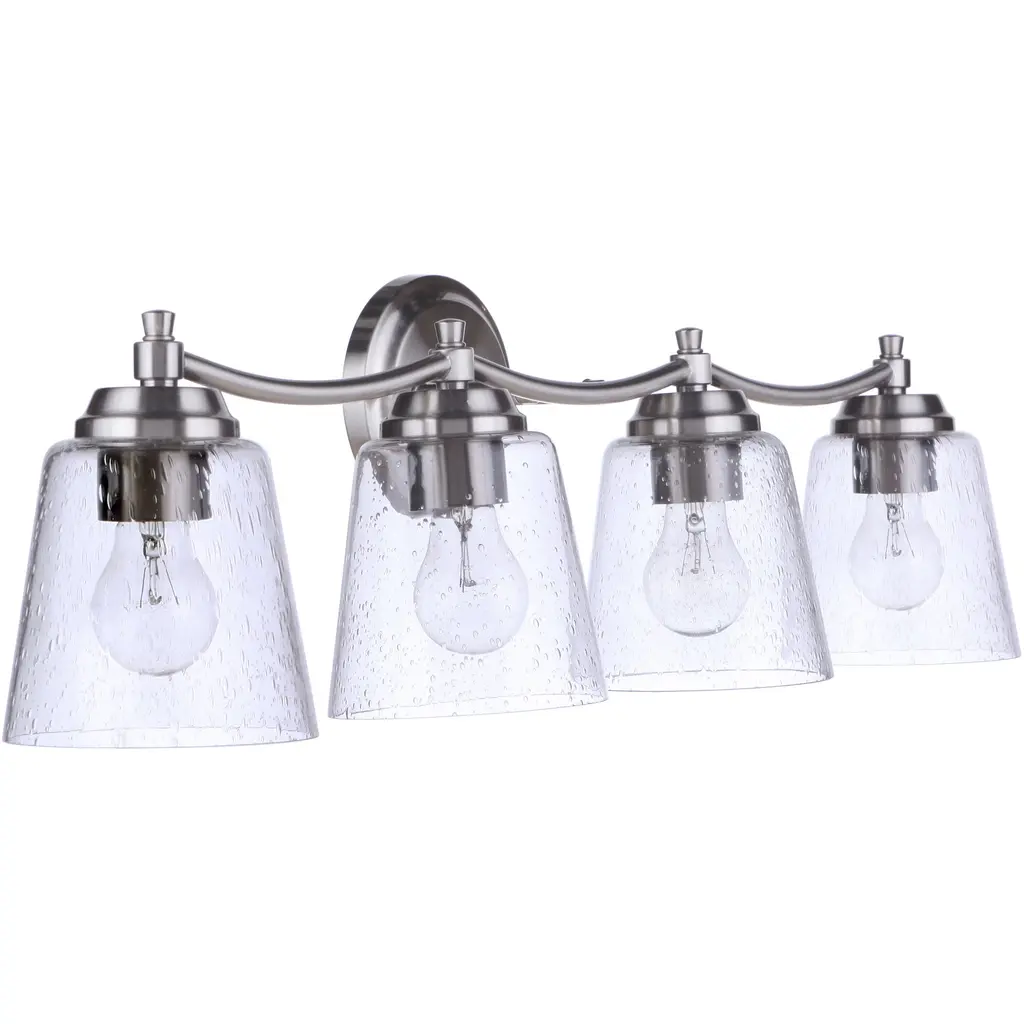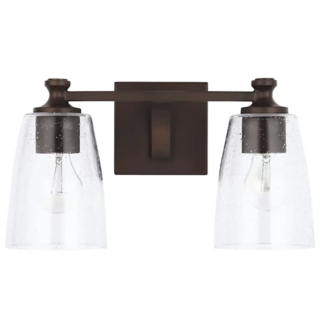 Reign in the sophisticated modern aesthetic of your bathroom with the shapely visuals of the Myles Vanity Light from Capital Lighting. Sporting a low-profile backplate, it’s hard not to be satisfied with this piece neatly mounted over the modern mirror. The bath bar says refined beauty with sculptural metal finials highlighted by their rounded silhouette. To satisfy your vintage taste, the piece wraps its bulbs with a charming clear seeded glass shade. The warmth of the bulbs catches the seeded accents as brief highlights. The outpouring light fills out the bathroom with an upscale warmth.