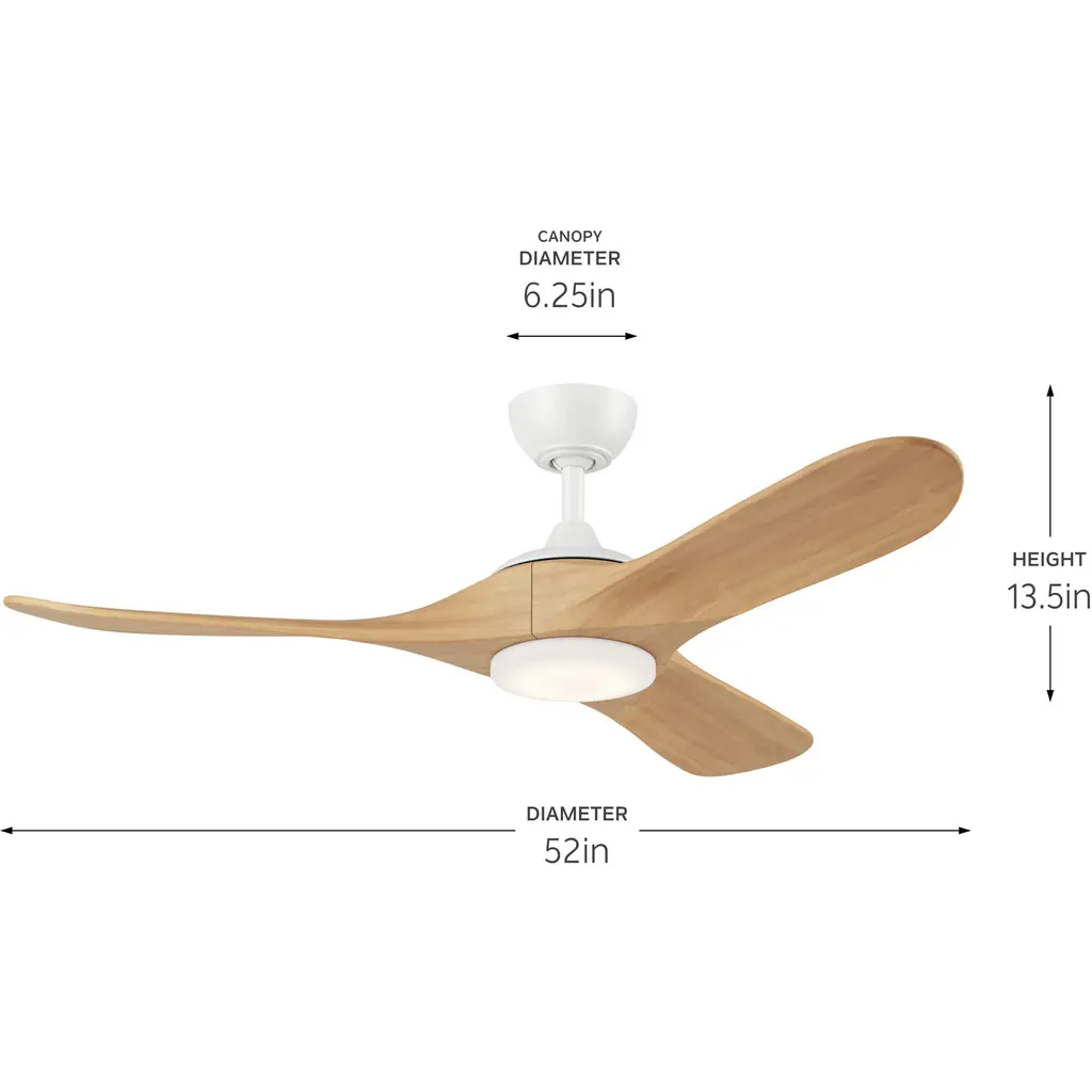 Mylo 52 Inch Matte White With White Maple Blades Ceiling Fan