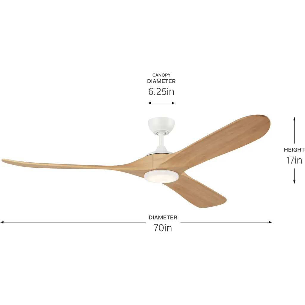 Mylo 70 Inch Matte White With White Maple Blades Ceiling Fan