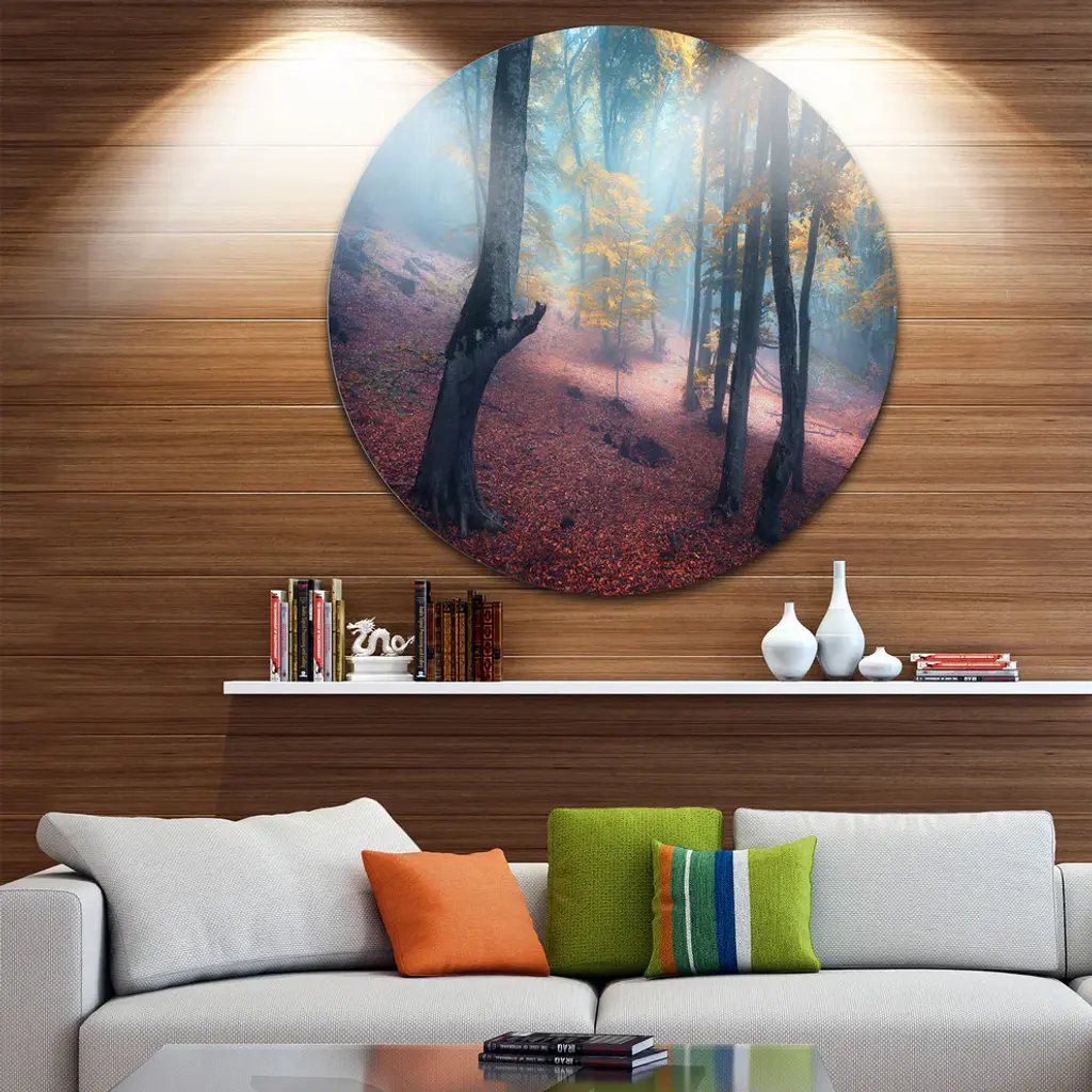 Mysterious Fairytale Yellow Wood, Landscape Photo Round Wall Art, 23"