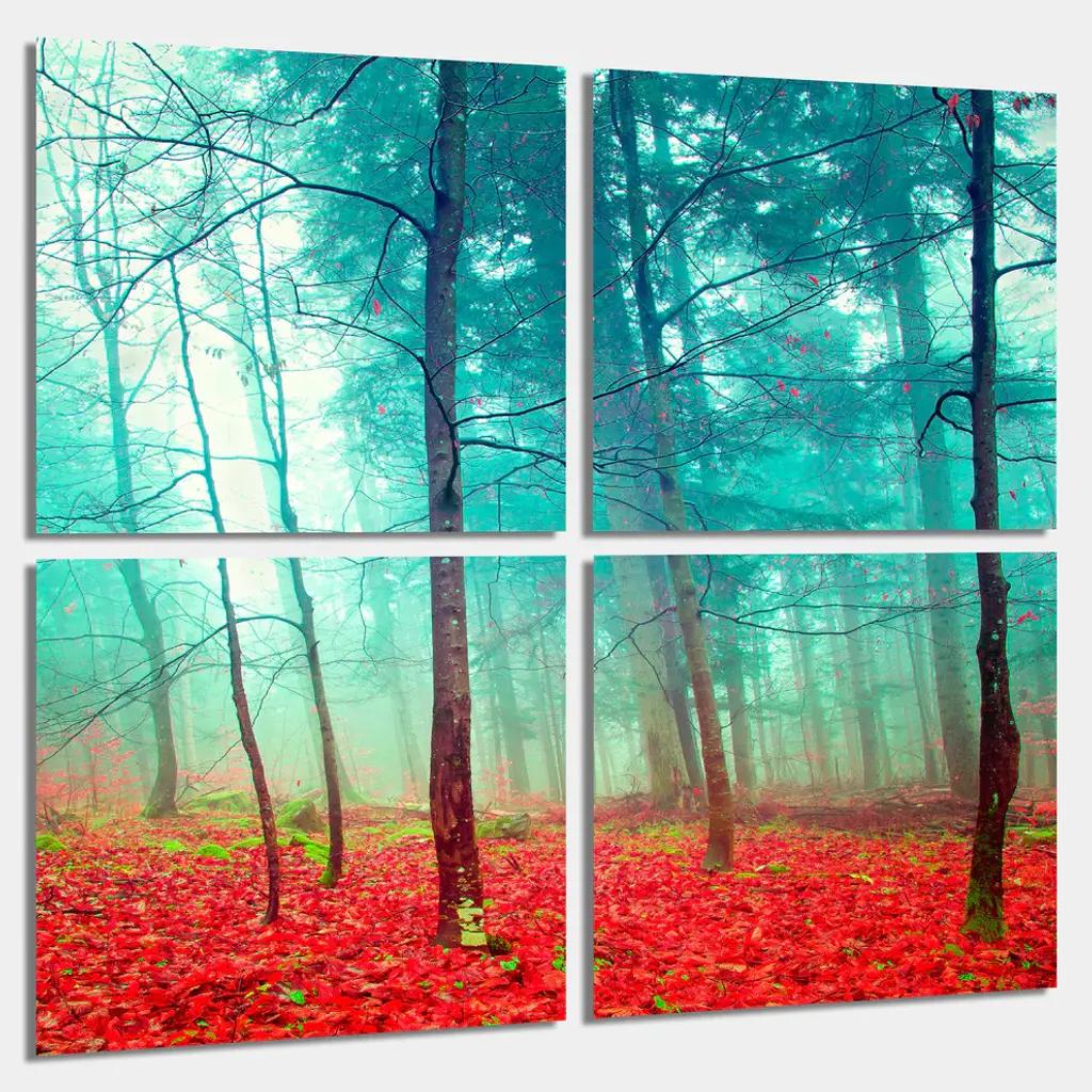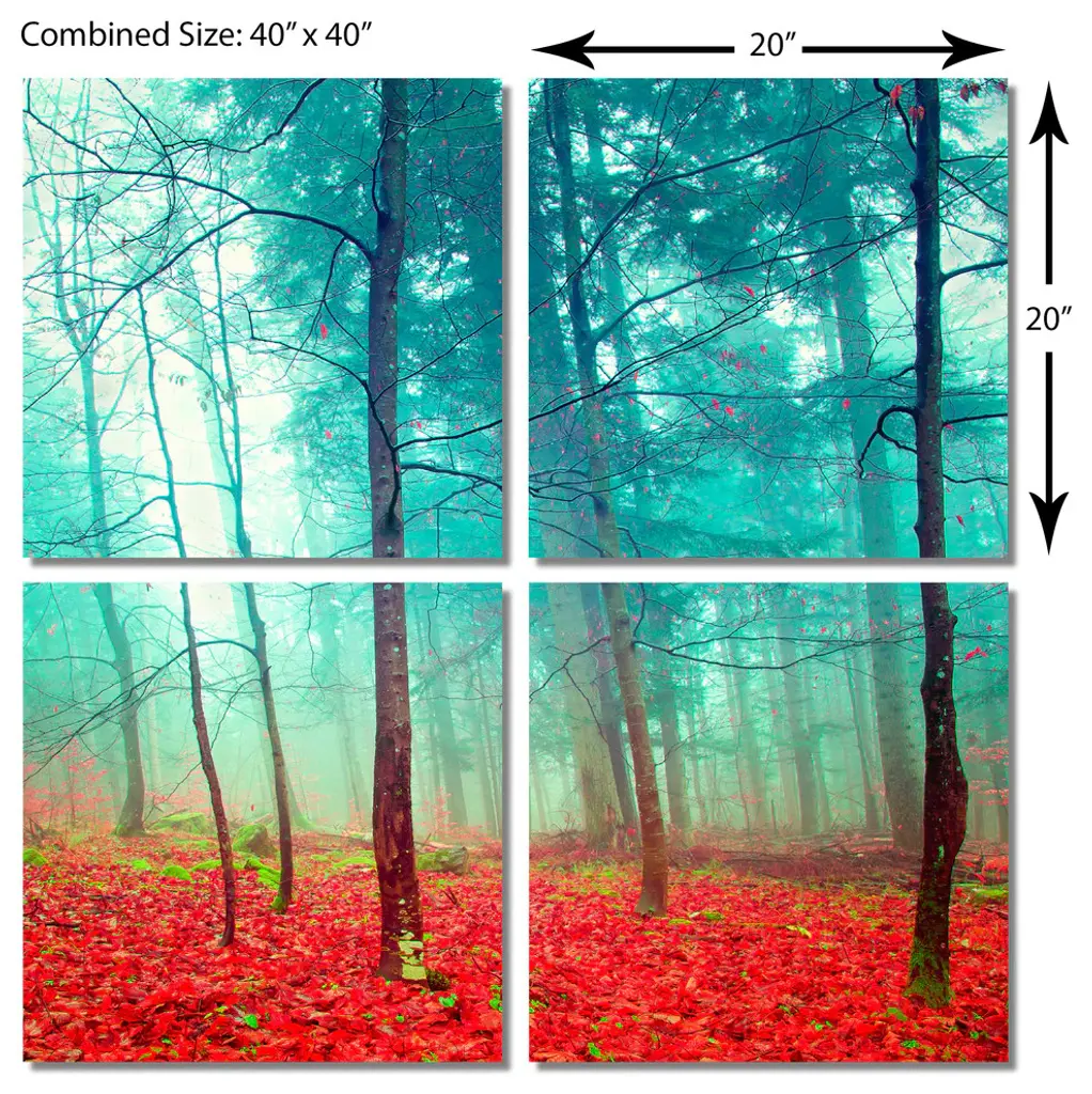 40"œ x 40"œ total size. Ready To Hang! (4 pieces - 20"œ x 20"œ each). 4 Panel Split (Quad) Nature photography of a colorful mystic autumn trees in forest. Modern metal wall art for home or office wall decor & interior design. Printed on Luxurious, HD aluminum glossy metal panels. Multi panel art.. HD aluminum panels. Metal print wall art. Includes Shadow Wall Mount on the back.• Aluminum Metal Wall Art• Made in USA• Ready to hang - No assembly required• Shadow mount hardware on the back• 0.045"œ thick HD Aluminum Panels• Scratch resistant, glossy finish• Superb color clarity, luxurious prints• Epson printing process• For indoor or moisture rich environment use• Easy to clean. Gently wipe with microfiber cloth.