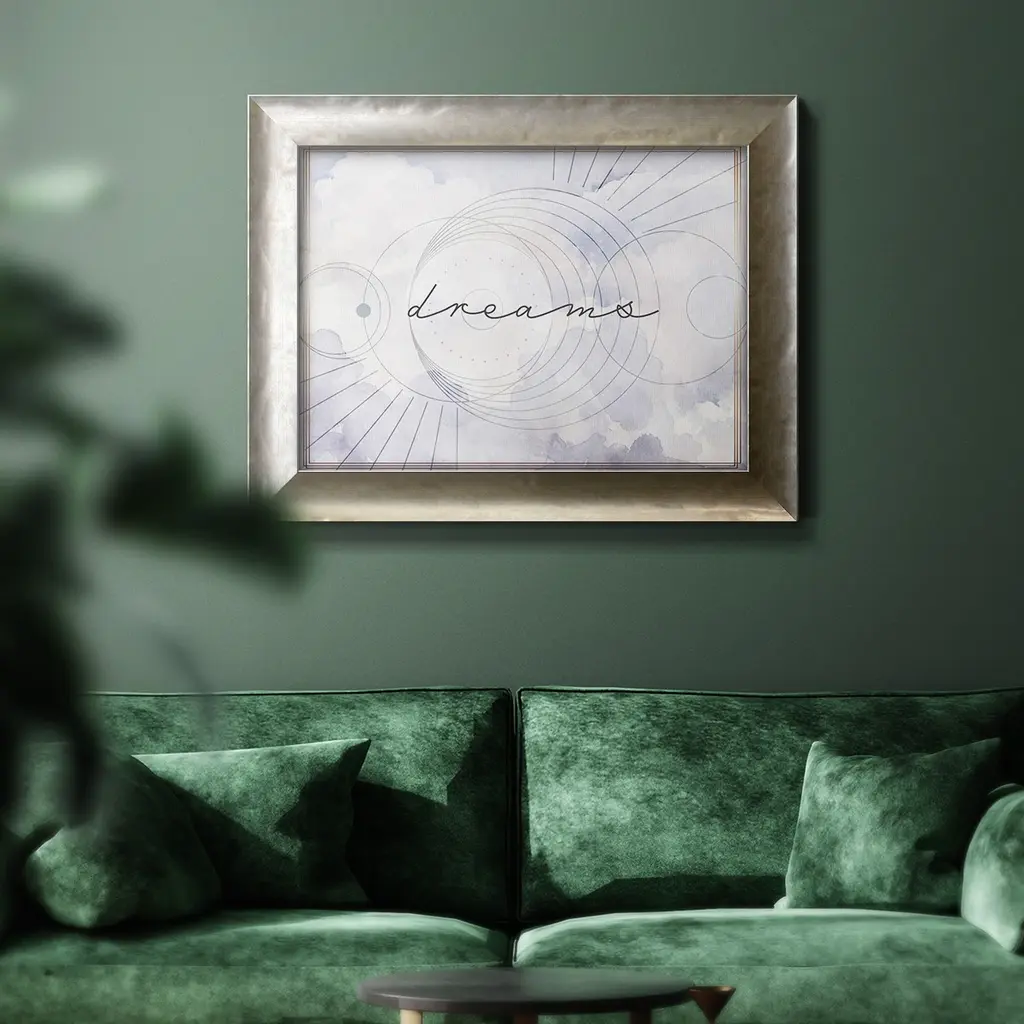 Mystic Escape I Premium Framed Canvas- Ready to Hang A Premium Framed Canvas created to last. Framed in distressed wood and available in an array of sizes and colors Featuring a beveled a solid wood stretcher bar, each piece comes ready to hand 3 SIZES AVAILABLE 16''X20'' - Overall Size 18'X27'' - Overall Size 24''x36'' - Overall Size Each piece is made to order. Each piece comes with hanging hardware. Made in the USA Ready to Hang Giclee Paper Print Acrylic Glass Beveled Matt Board