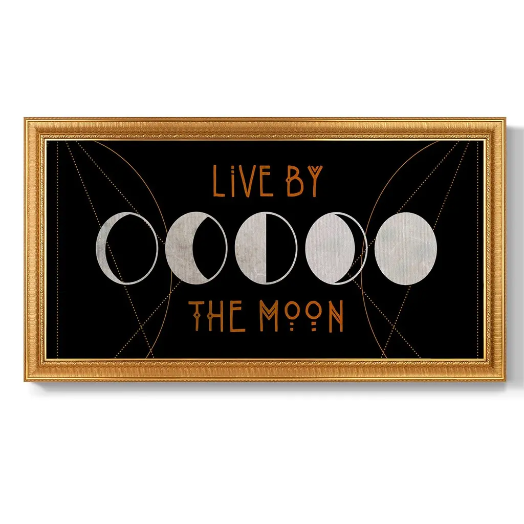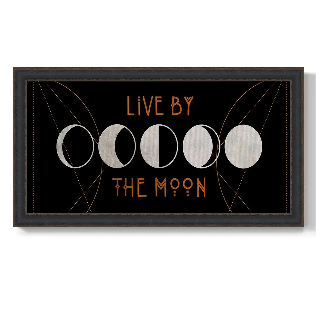 Mystic Moon Collection D Premium Framed Canvas- Ready to Hang A Premium Framed Canvas created to last. Framed in distressed wood and available in an array of sizes and colors Featuring a beveled a solid wood stretcher bar, each piece comes ready to hand 3 SIZES AVAILABLE 21''X37'' - Overall Size 25''X45'' - Overall Size 29''x53'' - Overall Size Each piece is made to order. Each piece comes with hanging hardware. Made in the USA Ready to Hang Giclee Paper Print Acrylic Glass Beveled Matt Board