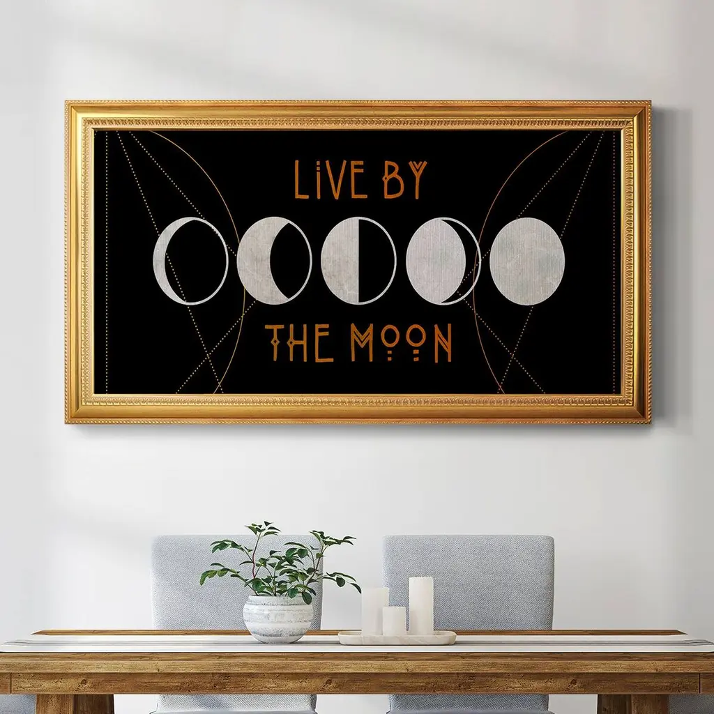 Mystic Moon Collection D Premium Framed Canvas- Ready to Hang A Premium Framed Canvas created to last. Framed in distressed wood and available in an array of sizes and colors Featuring a beveled a solid wood stretcher bar, each piece comes ready to hand 3 SIZES AVAILABLE 21''X37'' - Overall Size 25''X45'' - Overall Size 29''x53'' - Overall Size Each piece is made to order. Each piece comes with hanging hardware. Made in the USA Ready to Hang Giclee Paper Print Acrylic Glass Beveled Matt Board