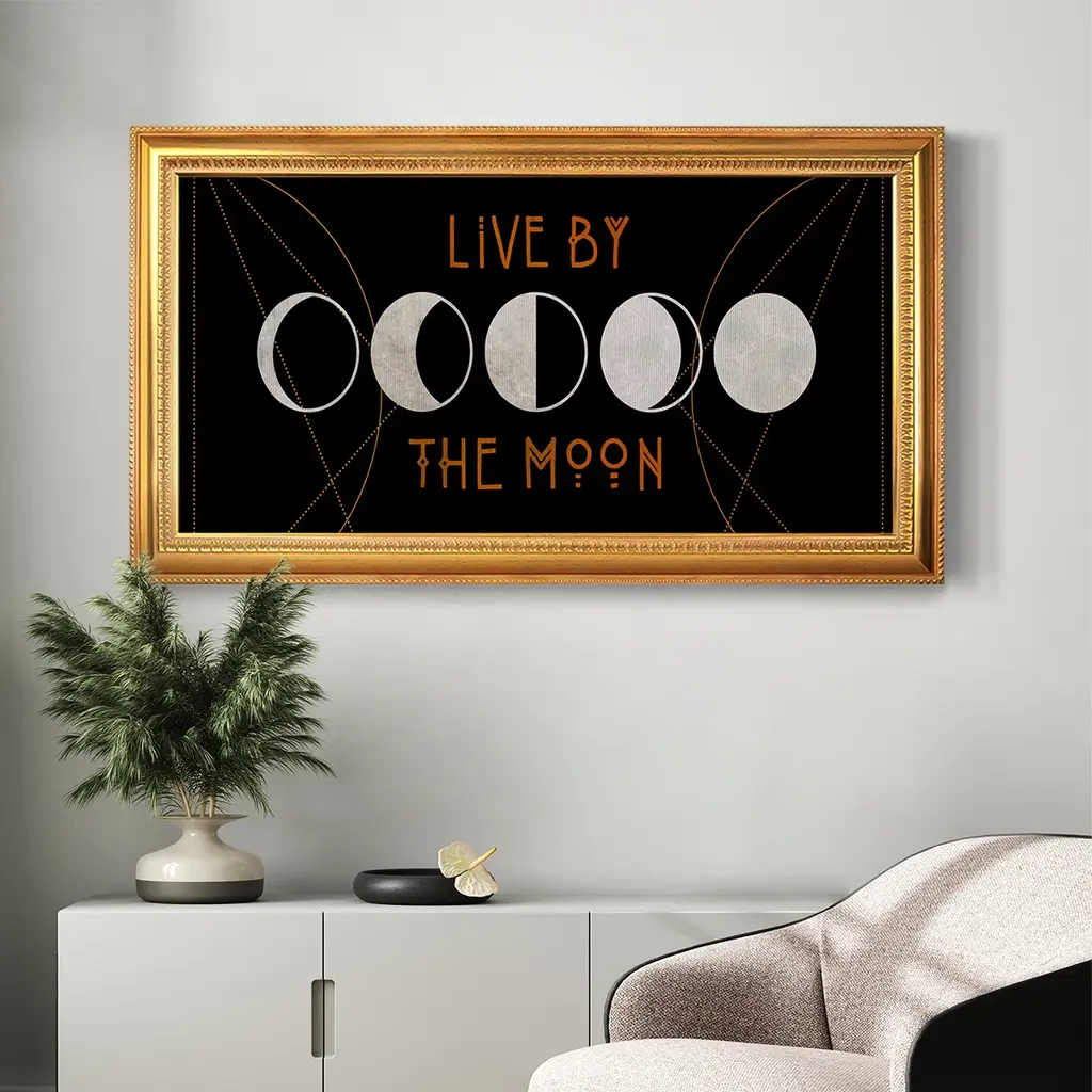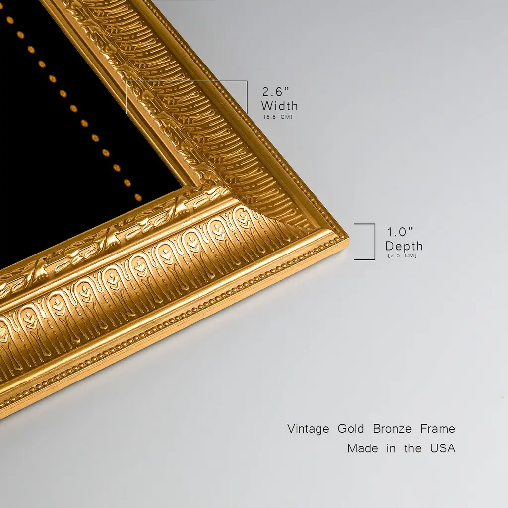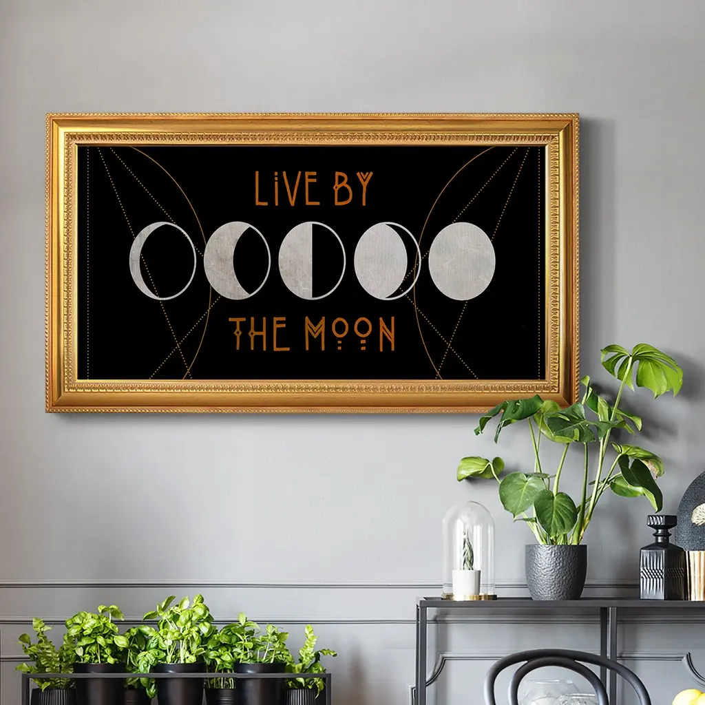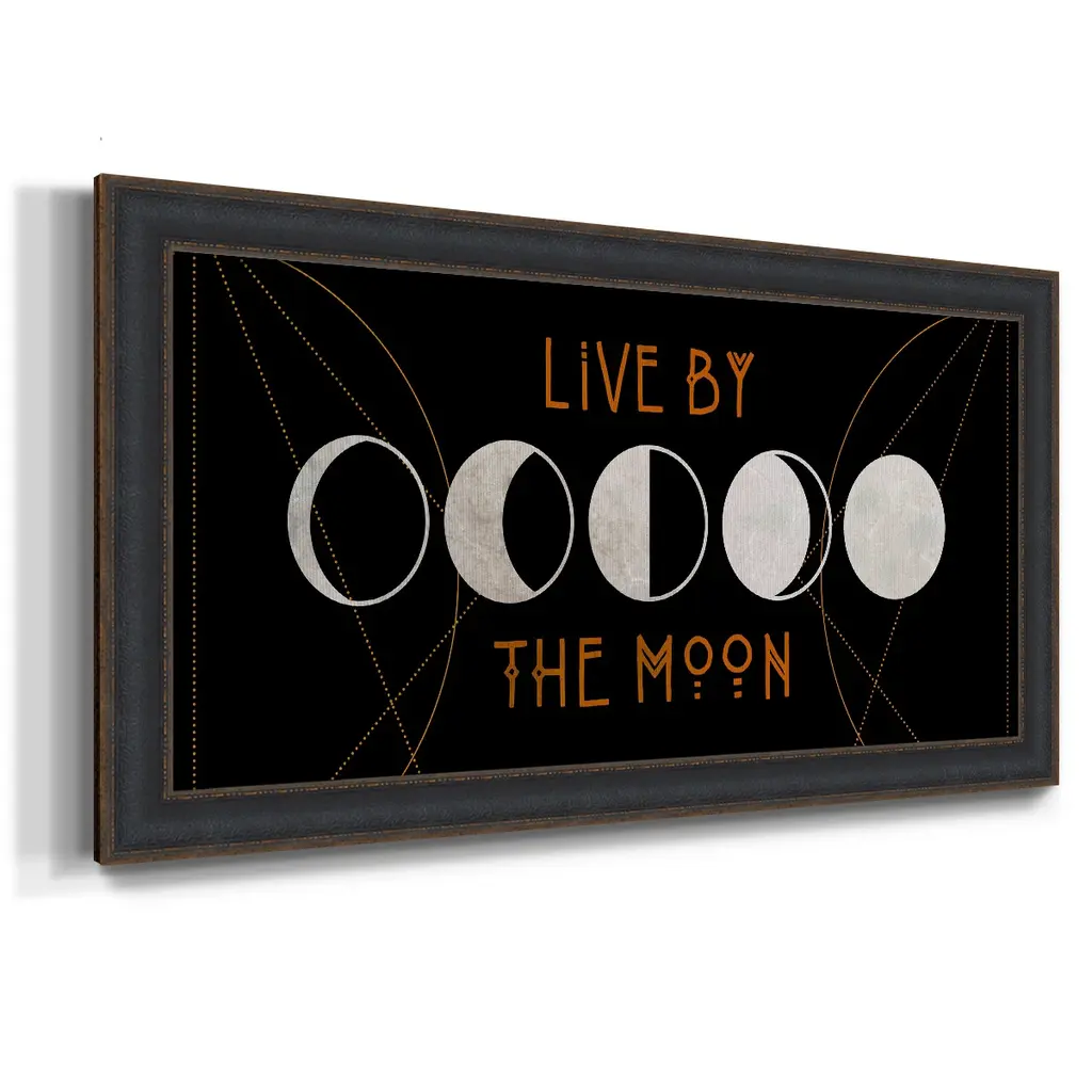 Mystic Moon Collection D Premium Framed Canvas- Ready to Hang A Premium Framed Canvas created to last. Framed in distressed wood and available in an array of sizes and colors Featuring a beveled a solid wood stretcher bar, each piece comes ready to hand 3 SIZES AVAILABLE 21''X37'' - Overall Size 25''X45'' - Overall Size 29''x53'' - Overall Size Each piece is made to order. Each piece comes with hanging hardware. Made in the USA Ready to Hang Giclee Paper Print Acrylic Glass Beveled Matt Board