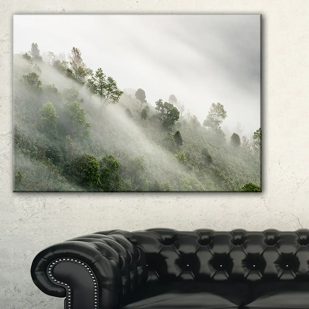 The Mystical Foggy Mountain Slope canvas art print is sure to make an impression on anyone who sees it. This artwork is gallery wrapped around a 1-inch solid wood frame and arrives carefully packaged and entirely ready to hang on the wall. Design Art only uses the highest resolution and pigments to ensure a crisp colorful print that is never faded or pixelated. This artwork is sure to be a conversation starter in any home or office.