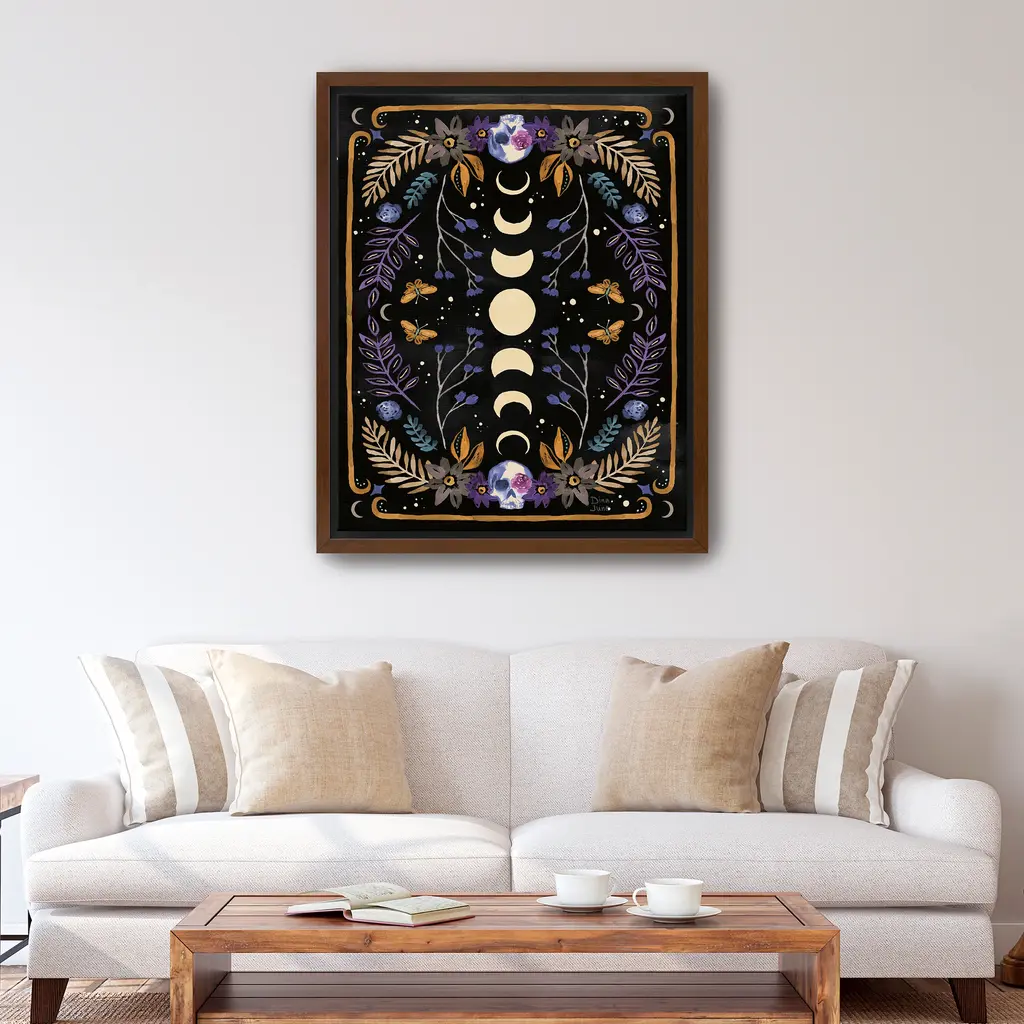 Suspended in darkness, the moon glows like a quiet sentinel. Each flicker of light reveals layers of autumn mystery and Halloween charm. Our Gallery Wrap Canvas Prints are proudly assembled with high quality materials in California, USA. Each piece is printed on a thick, archival grade canvas using Giclee technology. It is then hand-stretched by our experienced artisans over solid wood bars, which will not warp over time. The final product is a piece personally crafted for you to confidently display on your wall. Care and Assembly: Ensure that the location of your piece has little to no exposure to heat, sunlight, and moisture. Wipe clean, only if needed. Each piece includes a sawtooth hanger to hang on your wall vertically.