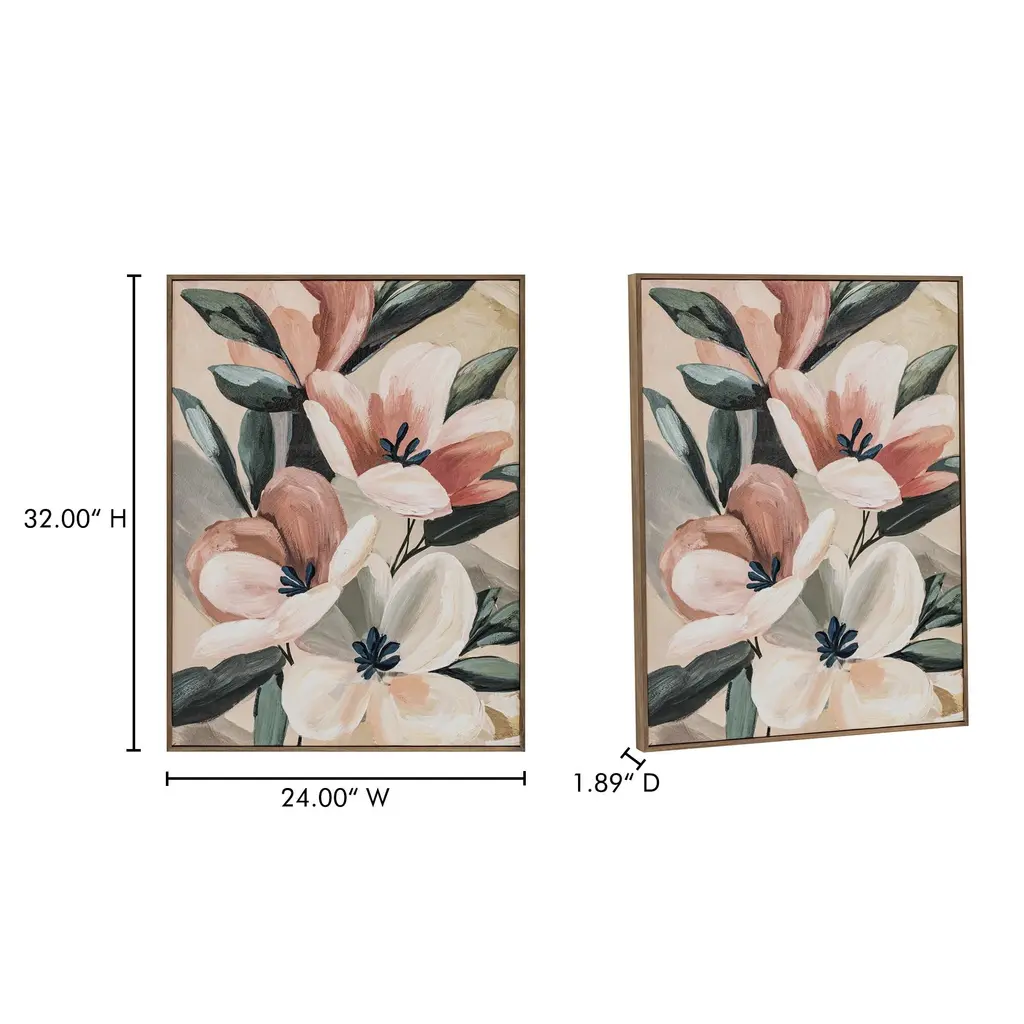 Infuse your living space with the timeless beauty of the NADAAL STUDIOS Evander Painting. Featuring textured brushstrokes that bring a tactile softness to its vintage-inspired floral design, this multicolor piece is crafted on durable canvas and framed with solid pine for lasting elegance. With hanging hardware included, the Evander painting is ready to elevate any room in your home. Perfect for creating spaces that are both loved and lived in, this artwork embodies Nadaal Studios' commitment to blending modern functionality with timeless style.