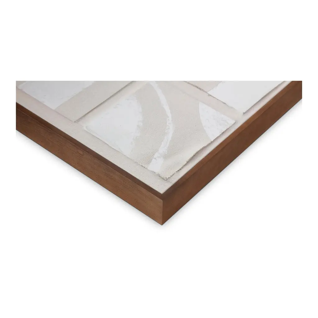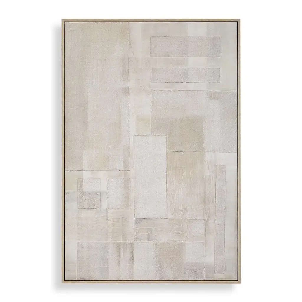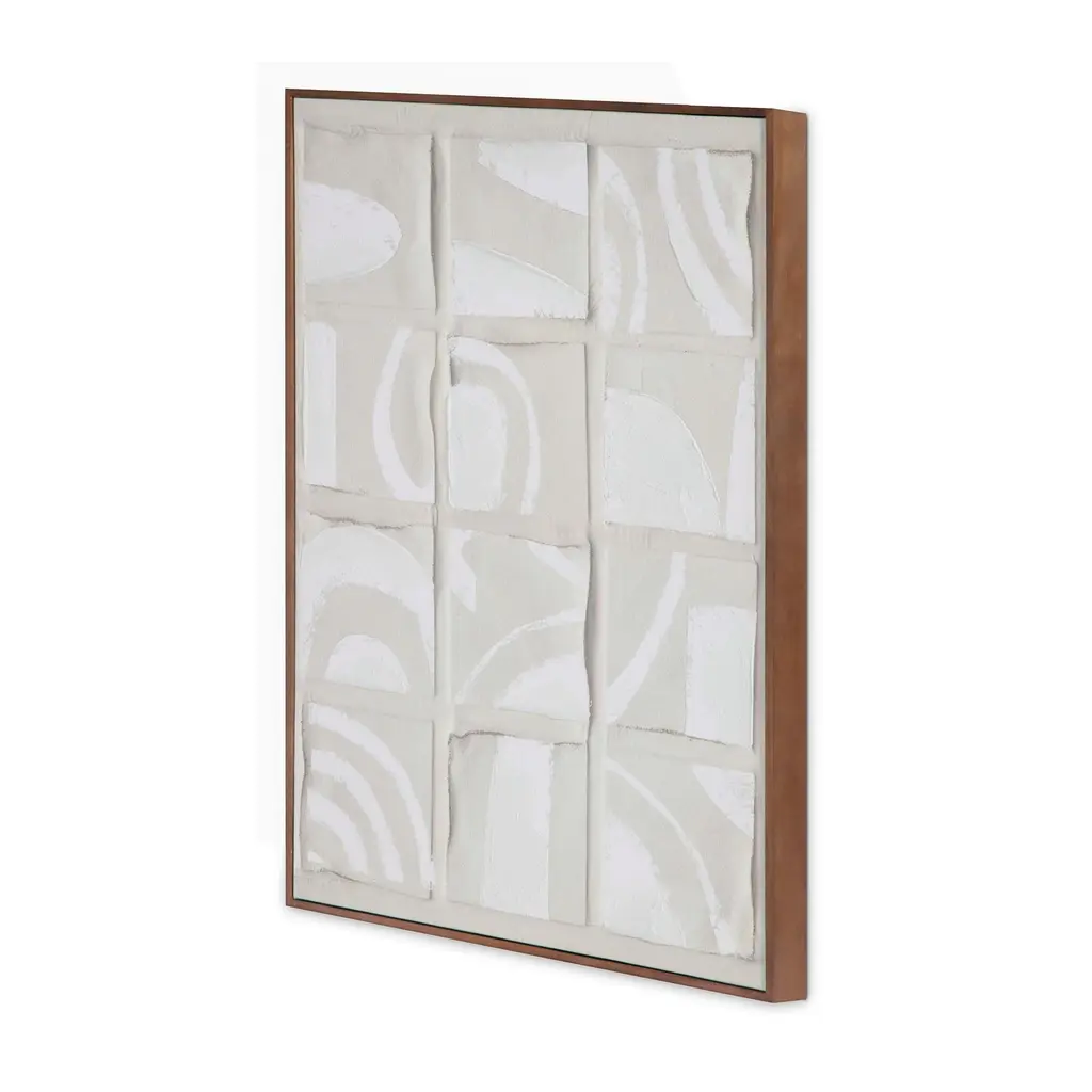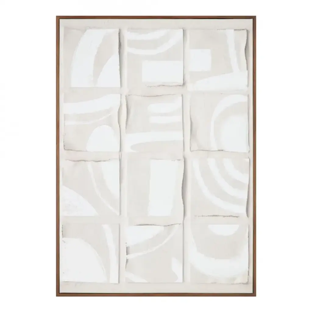 Elevate your home décor with the NADAAL STUDIOS Saxon Framed Print, an exquisite piece featuring an abstract design printed on canvas. The artwork is stretched over pine wood and framed in a rich brown pinewood frame, adding a touch of sophistication to any room. The shadowed tones add depth and dimension to the collage-like squares, while the neutral color palette and irregular shapes soften the sharp edges, creating a visually captivating piece. Ideal for contemporary interiors, this abstract print requires no assembly and comes ready to hang. Regular dusting ensures it remains a stunning focal point in your living space.