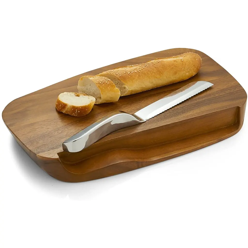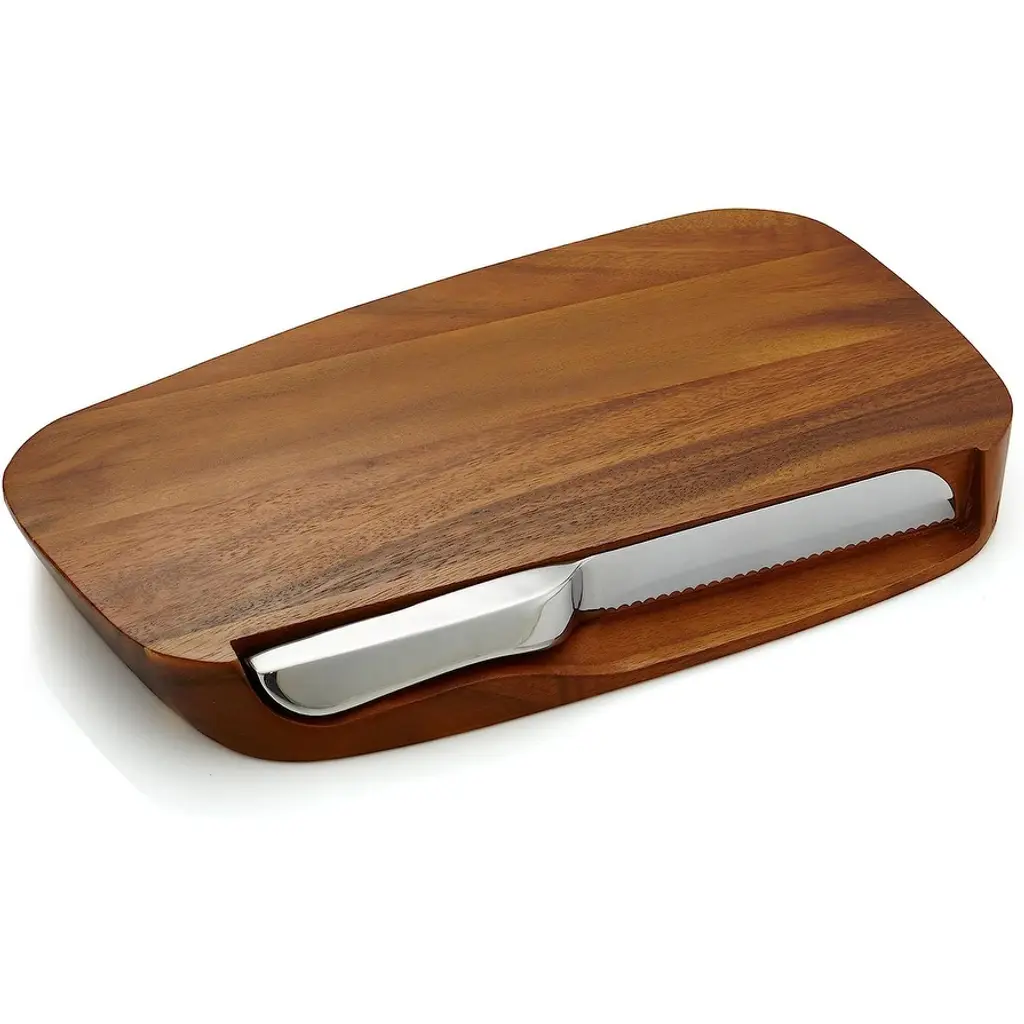 Nambe Blend Bread Board W/ Knife - 17.5" - 17.5" - Brown (Acacia Wood)