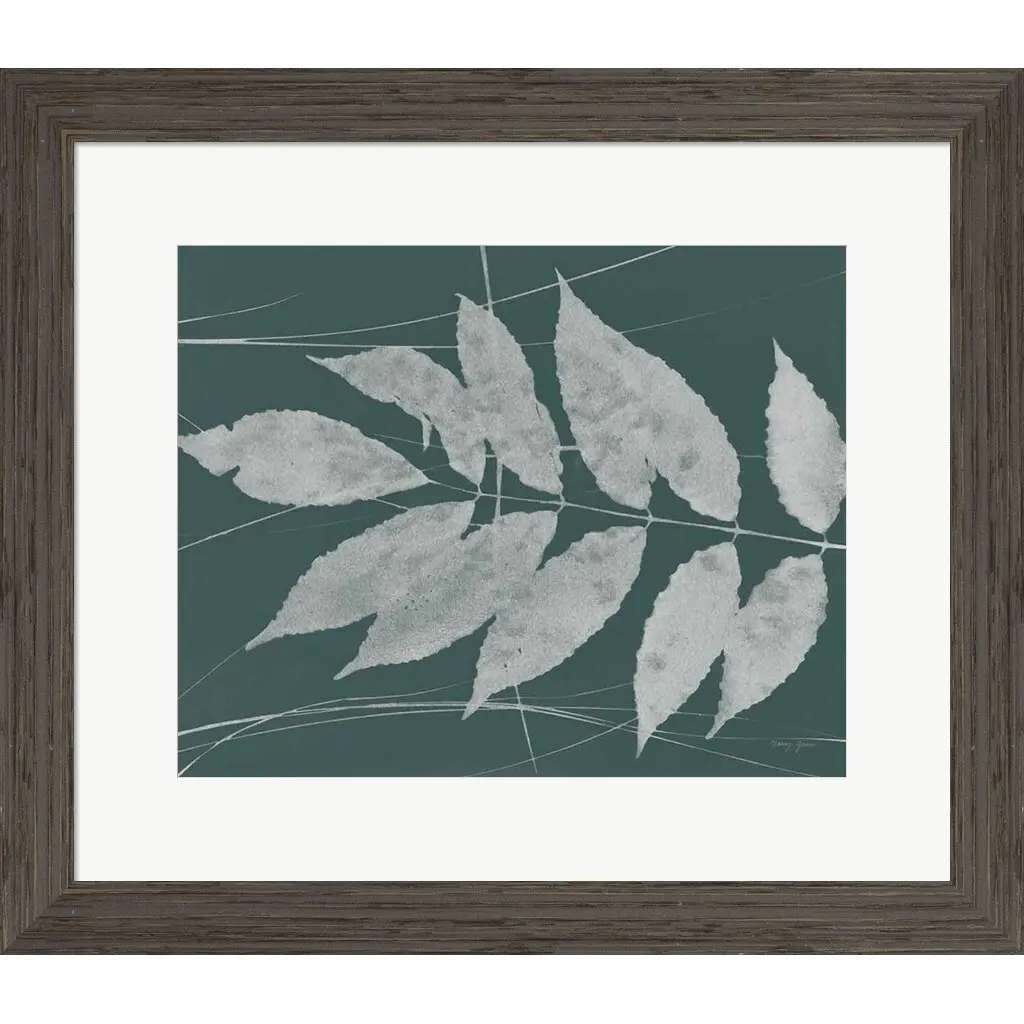 Enchanted Fall Cyanotype IX Horizontal by Nancy Green is a high quality piece of framed artwork. The finished size of this piece is 22.5" X 19.5". It has a Weathered White Washed Deep Gray frame, is single matted and finished with high quality Acrylic Plexiglass. 100% Satisfaction Guaranteed.