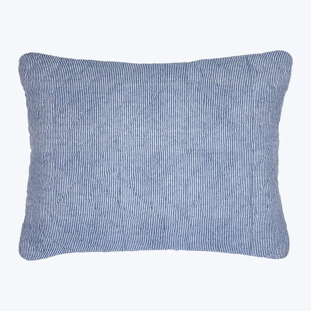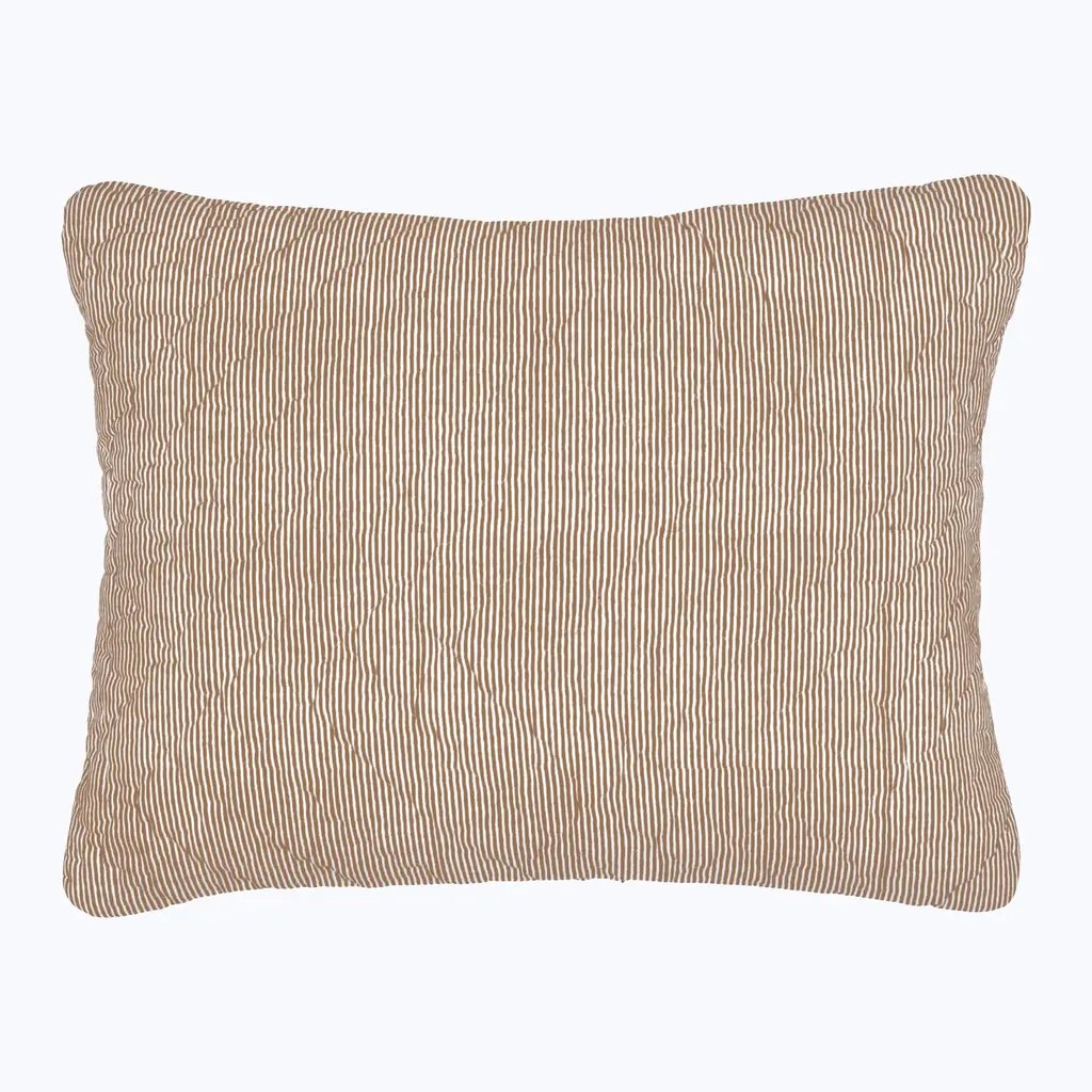 Add a timeless touch to your bedroom with the Nandi Sham by John Robshaw. Printed on pure cotton voile, this classic sham taps into the enduring appeal of stripes. Infused with movement, the Nandi Sham’s striped pattern has an organic feel reminiscent of hand drawing. Crafted in India. Available in Coffee and Sage hues, as well as Standard, King, and Euro sizes. Known for his beautiful blend of old-world traditions and new-world style, John Robshaw creates exquisite textiles inspired by traditional Indian prints and a centuries-old woodblock printing technique. Dying, printing, and experimenting alongside artisans to create his unique fabrics, John Robshaw helps preserve traditional block printing, hand-stitching, hand-painting, and hand-quilting in India.
