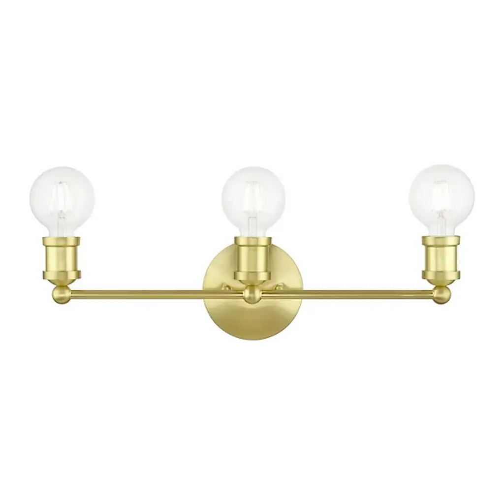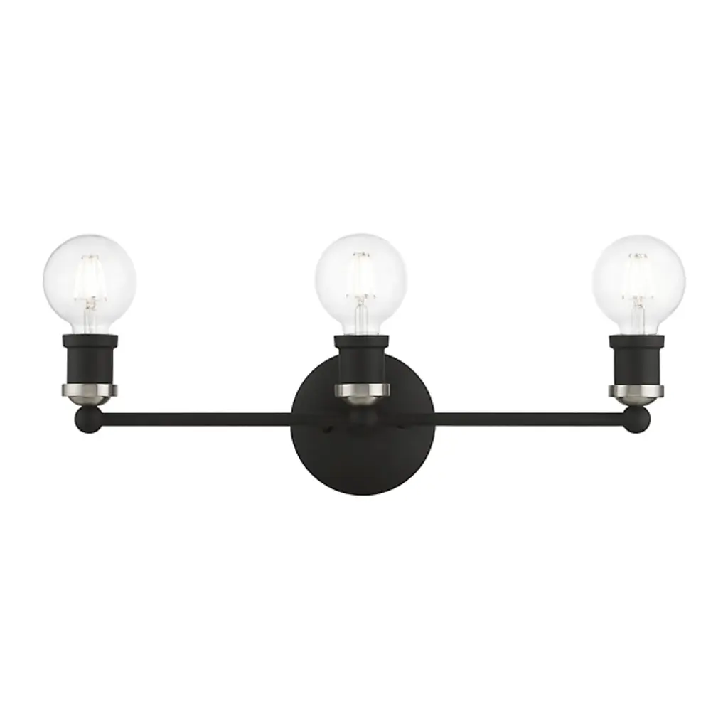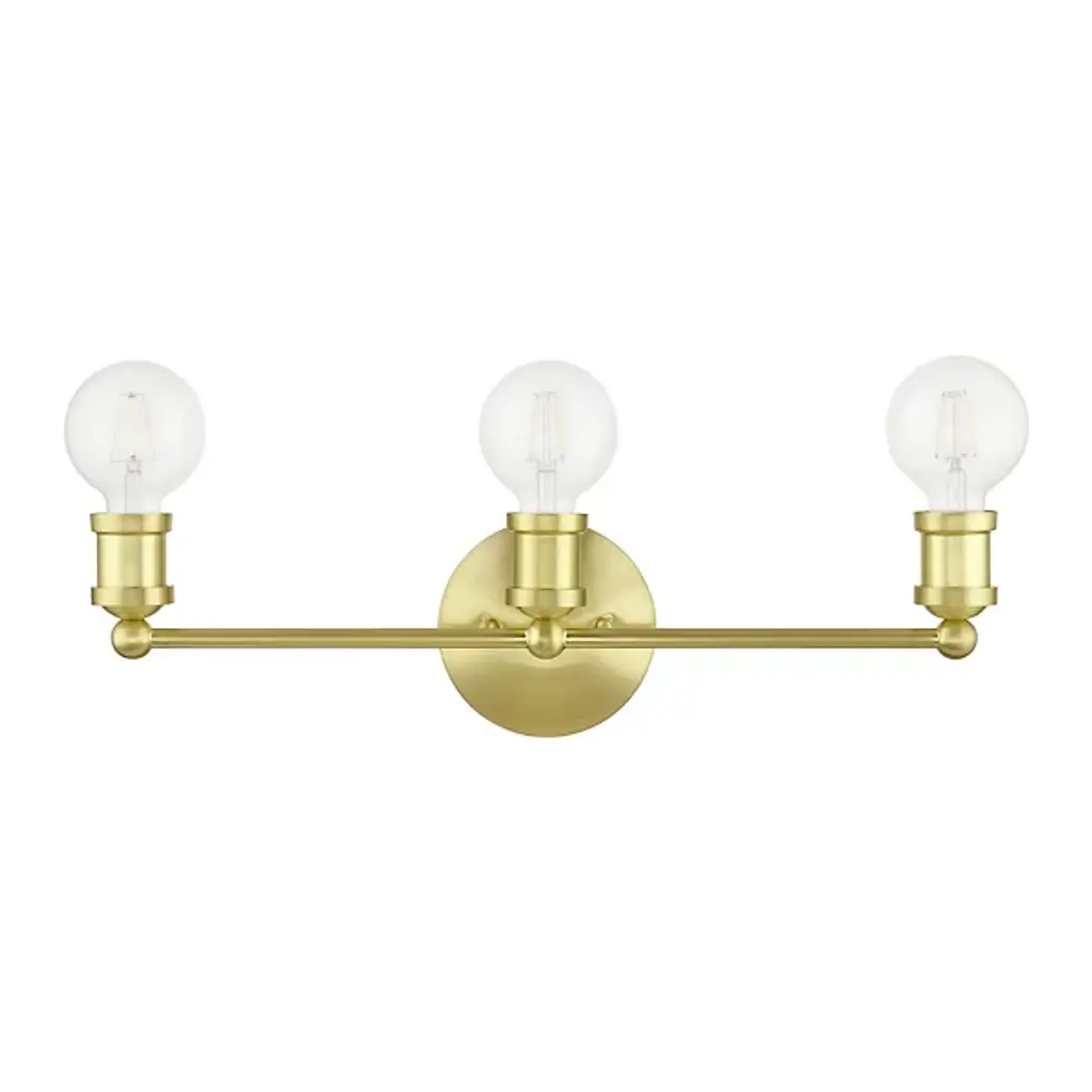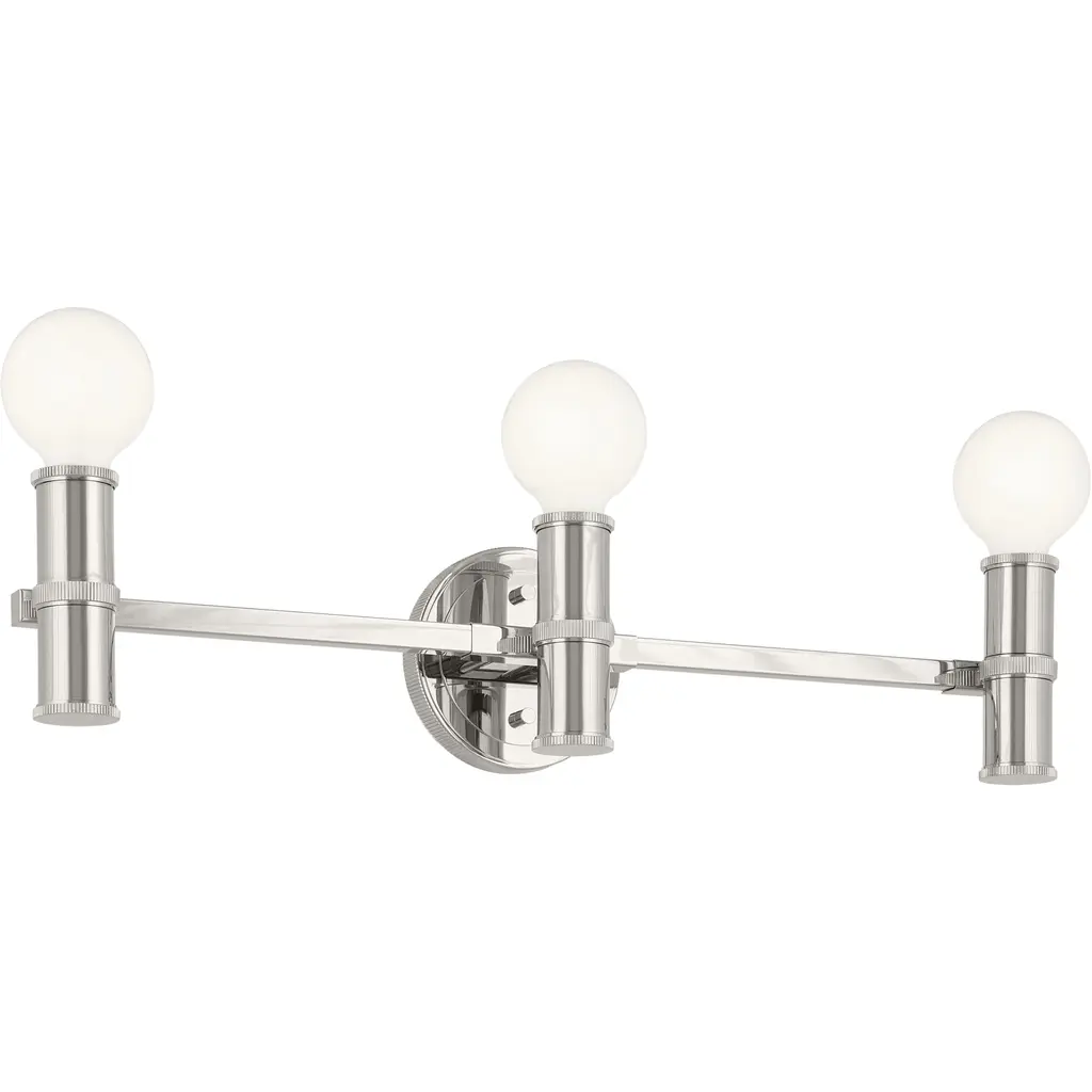 Clean lines and a charming vintage design offer the Naomi Vanity Light from Alder & Ore a stately, enduring elegance. Extending from a rounded wall plate, a slender crossbar supports damp-listed open lamping. Each one emerges from single banded sockets that offer a touch of texture to an otherwise simple design, ideal for mounting over a mirror and able to be arranged up or down for an additional touch of customization.