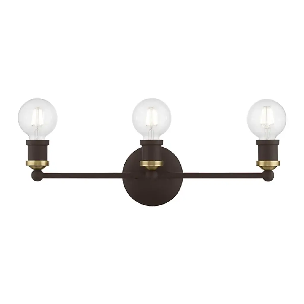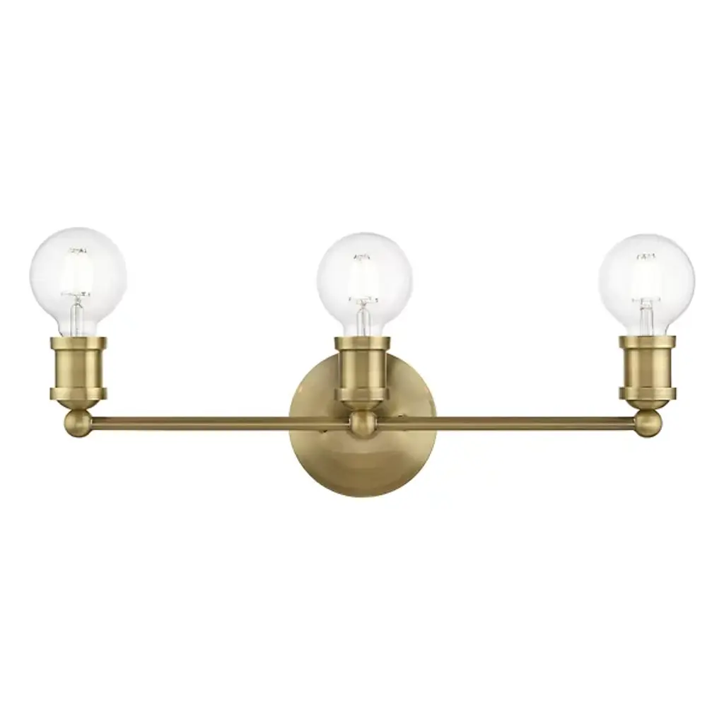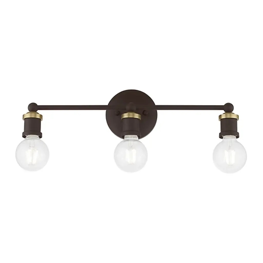 Clean lines and a charming vintage design offer the Naomi Vanity Light from Alder & Ore a stately, enduring elegance. Extending from a rounded wall plate, a slender crossbar supports damp-listed open lamping. Each one emerges from single banded sockets that offer a touch of texture to an otherwise simple design, ideal for mounting over a mirror and able to be arranged up or down for an additional touch of customization.