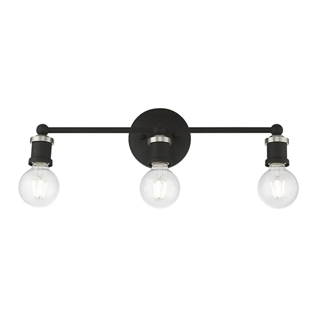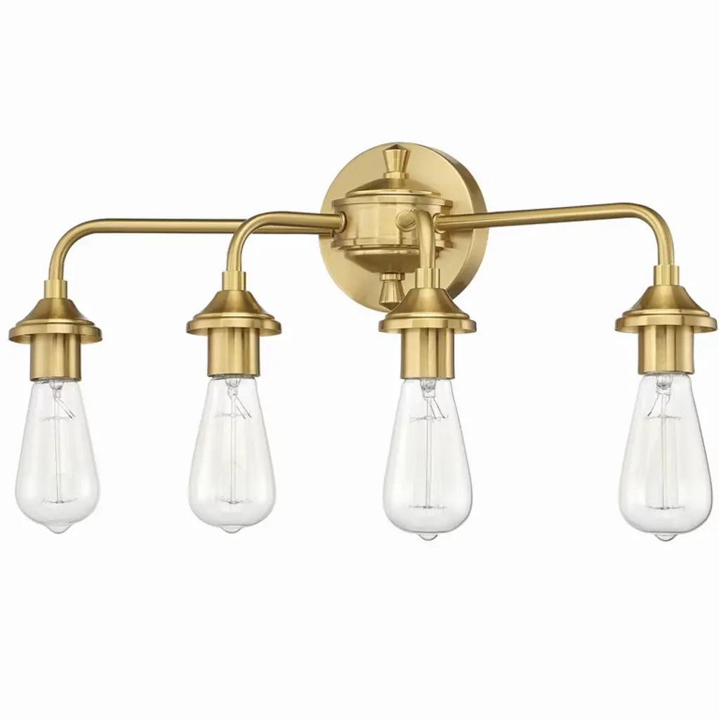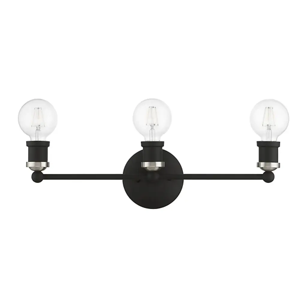 Clean lines and a charming vintage design offer the Naomi Vanity Light from Alder & Ore a stately, enduring elegance. Extending from a rounded wall plate, a slender crossbar supports damp-listed open lamping. Each one emerges from single banded sockets that offer a touch of texture to an otherwise simple design, ideal for mounting over a mirror and able to be arranged up or down for an additional touch of customization.