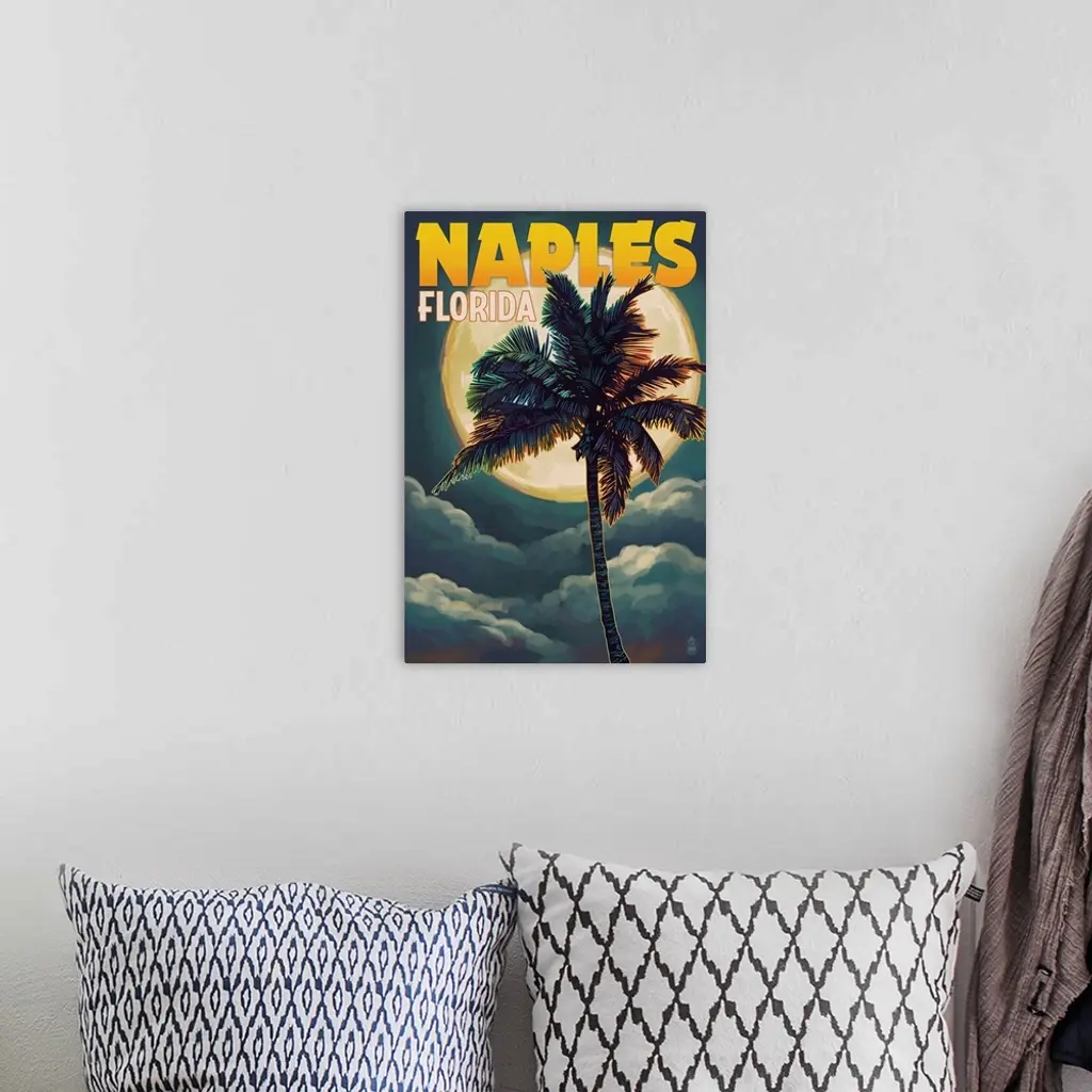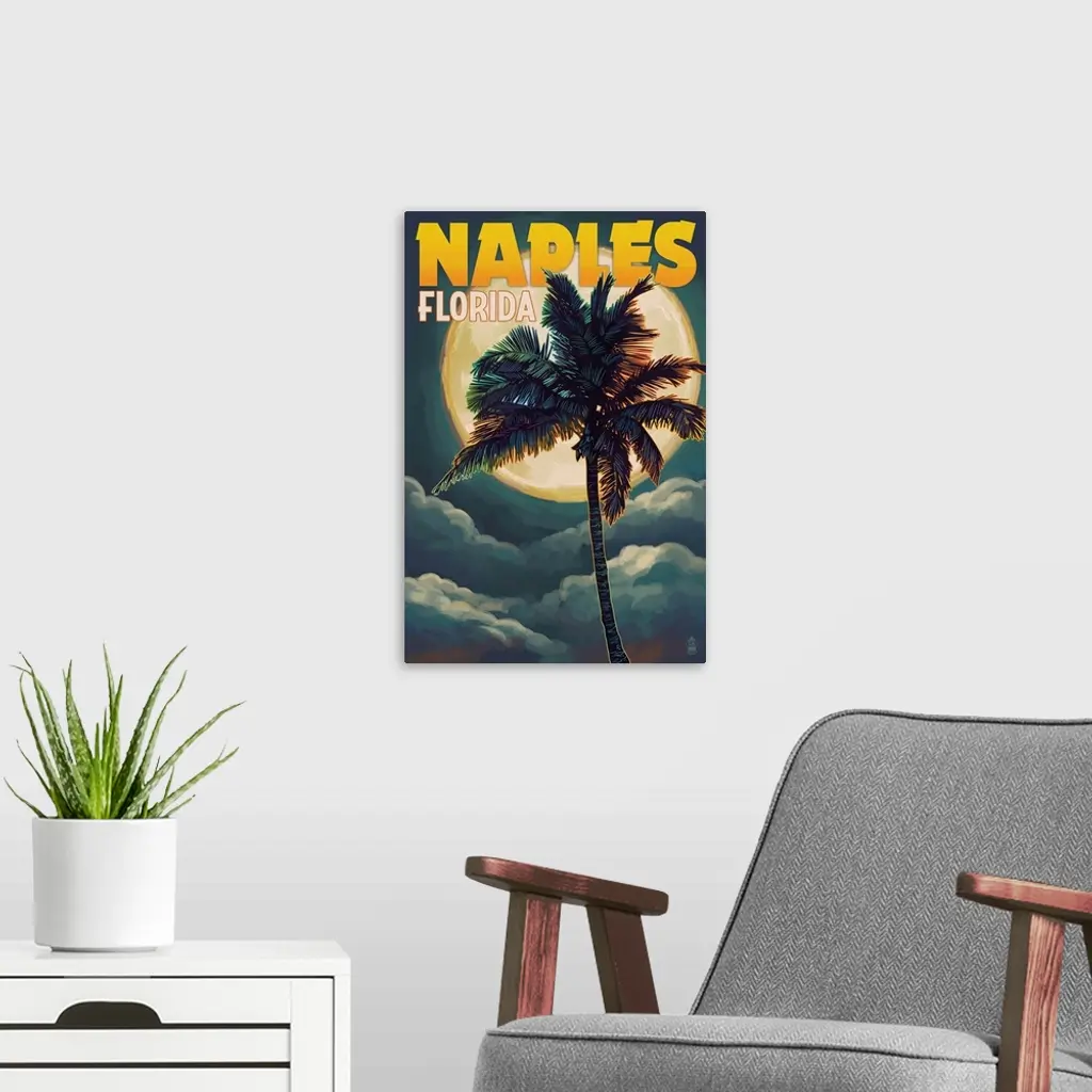 Naples, Florida - Palm and Moon: Retro Travel Poster wall art for home and office decor. Discover canvas art prints, photos, mural, big canvas art and framed wall art in GreatBigCanvas.com's varied collections.