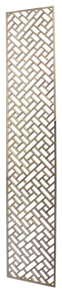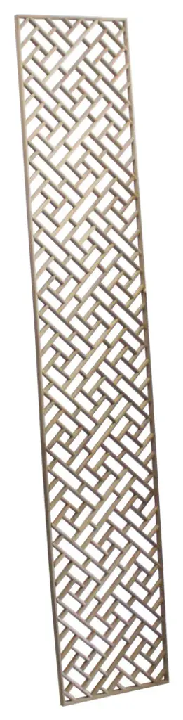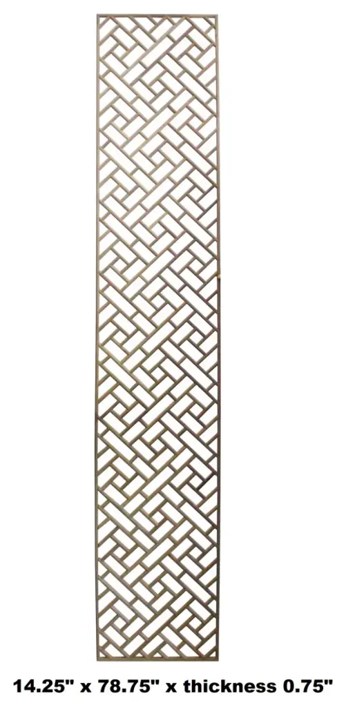 This is a traditional Chinese decorative panel with a geometric pattern in narrow long rectangular shape. Dimensions: 14.25" x 78.75" thickness 0.75"Origin: ChinaMaterial: Solid Elm WoodCondition: handmade, raw wood rough marks, variation in detailWork: ship in one piece, no nail joint, the joint point may loose, can put back on