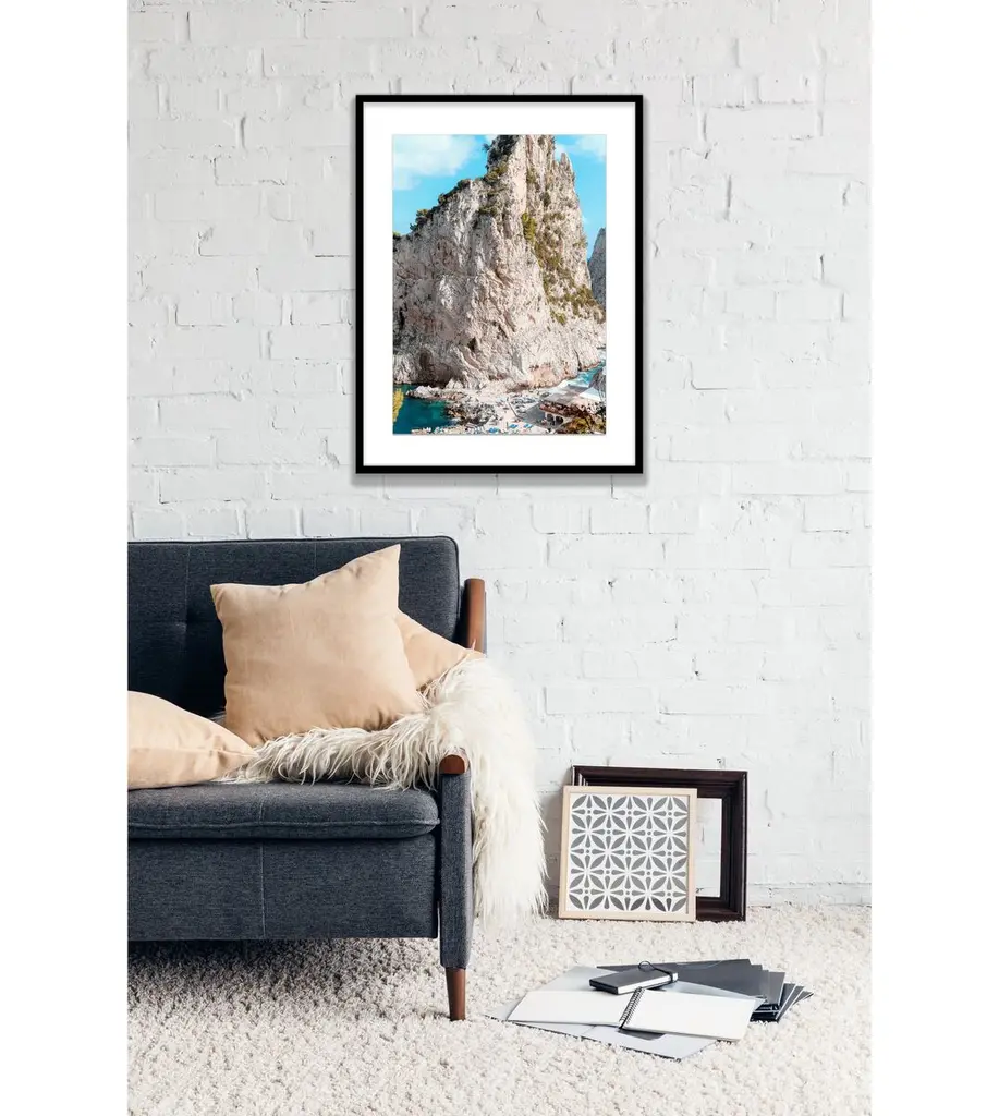 Seen first at One Kings Lane: This image from Natalie Obradovich transports the viewer to a rocky locale off the coast of southern Italy. Printed on high-quality photo paper, floated over a white mat, and displayed in a pine frame, this piece arrives ready to hang.Natalie Obradovich is a New York- and Los Angeles-based travel photographer inspired by work in interior design, international trips, and love of all things oceanic. A graduate of USC, Natalie worked for the iconic Kelly Wearstler in Los Angeles followed by tenures in New York under other prestigious interior decorators including Thad Hayes and Neal Beckstedt.