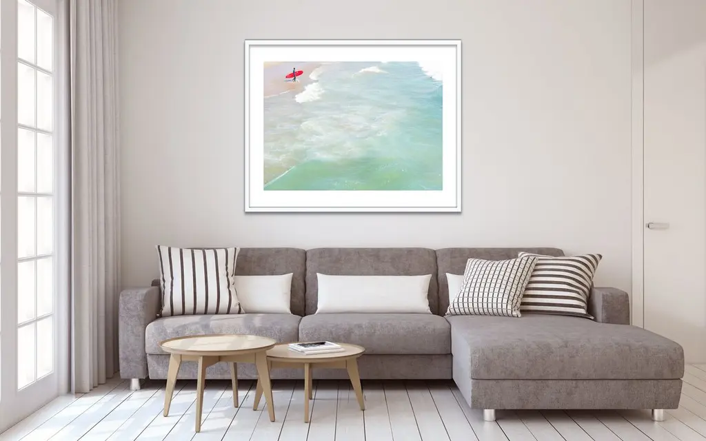 Seen first at One Kings Lane: This image from Natalie Obradovich captures a lone surfer wading into beautiful clear waters. Printed on semi-gloss photo paper and beautifully framed, this piece arrives ready to hang.Natalie Obradovich is a New York- and Los Angeles-based travel photographer inspired by work in interior design, international trips, and love of all things oceanic. A graduate of USC, Natalie worked for the iconic Kelly Wearstler in Los Angeles followed by tenures in New York under other prestigious interior decorators including Thad Hayes and Neal Beckstedt.