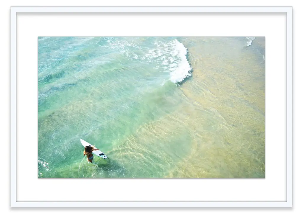 Seen first at One Kings Lane: This image from Natalie Obradovich captures a lone surfer in crystal-clear waters on beautiful Manhattan Beach. Printed on semi-gloss photo paper, floated over a white mat, and beautifully framed, this piece arrives ready to hang.Natalie Obradovich is a New York- and Los Angeles-based travel photographer inspired by work in interior design, international trips, and love of all things oceanic. A graduate of USC, Natalie worked for the iconic Kelly Wearstler in Los Angeles followed by tenures in New York under other prestigious interior decorators including Thad Hayes and Neal Beckstedt.